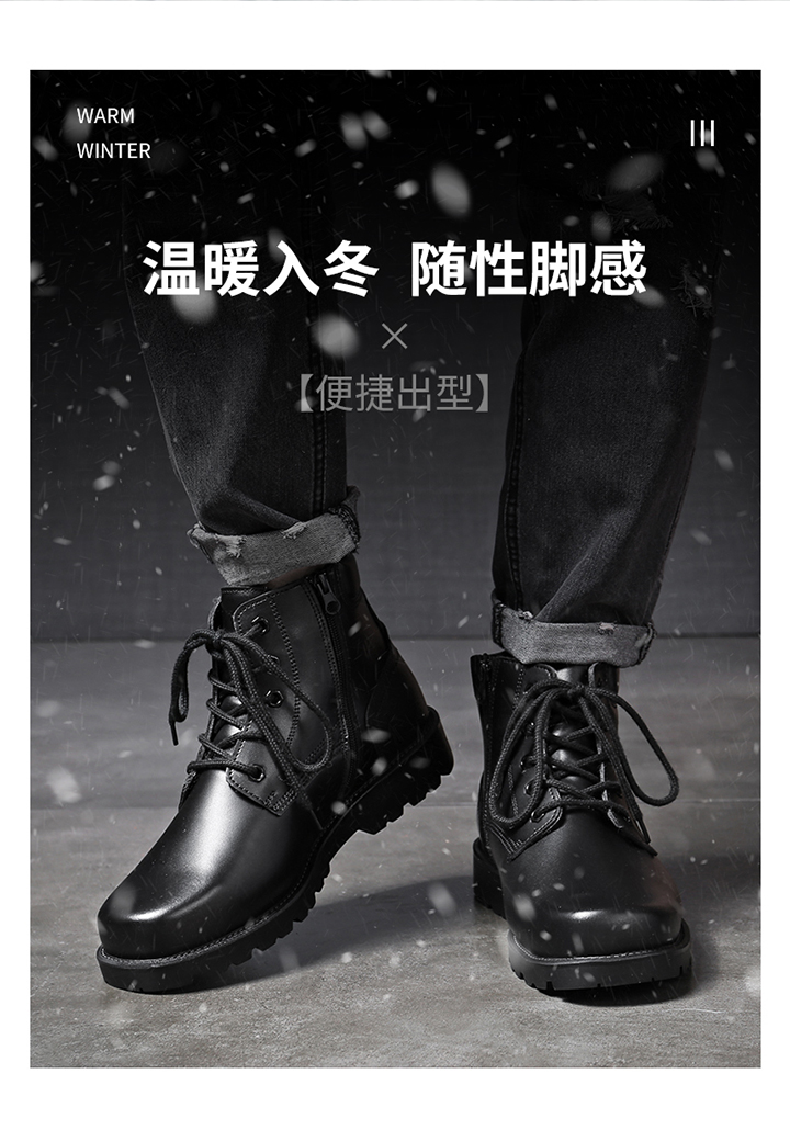 3515强人冬季男靴保暖羊毛防寒鞋户外雪地靴高帮加厚执勤鞋厚底鞋 JC6-BC127