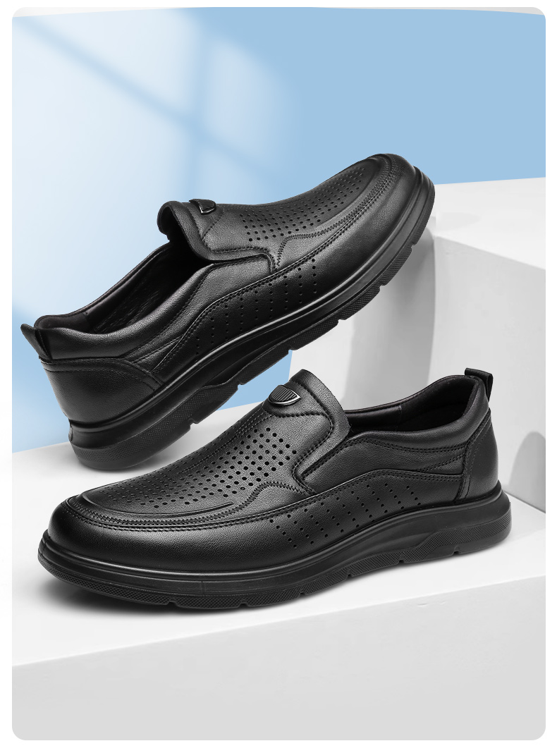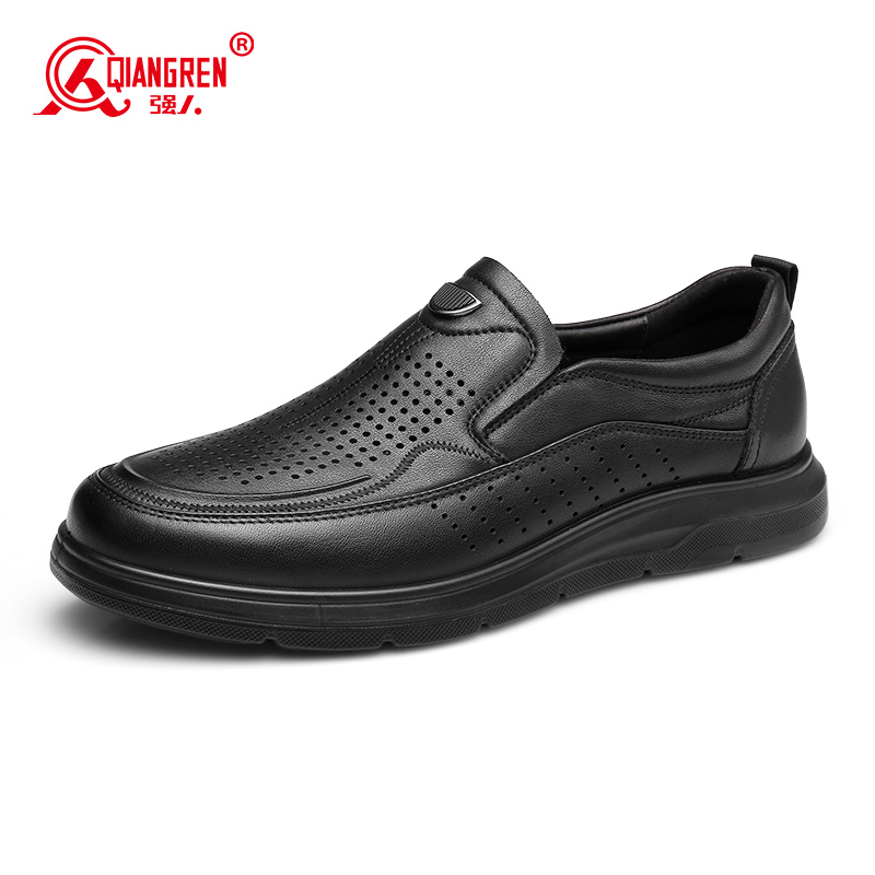 强人3515一脚蹬皮鞋男夏季透气镂空皮鞋真皮休闲男士凉皮鞋351317