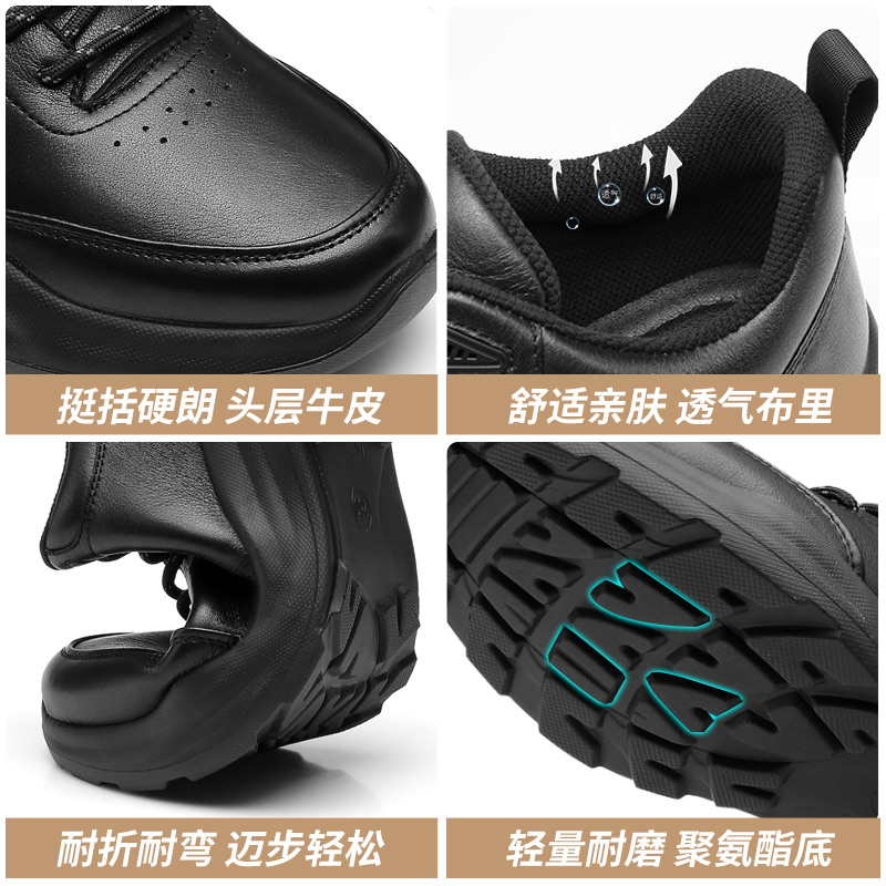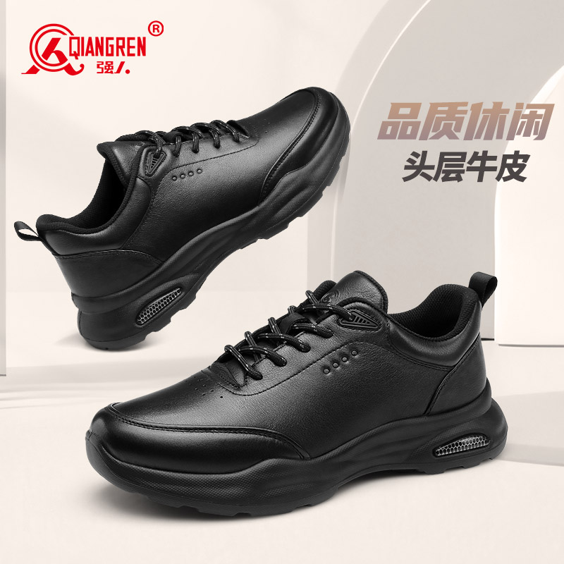 3515强人男鞋秋季新款商务运动皮鞋男真皮耐磨舒适软底通勤休闲鞋黑色351336灰色351337