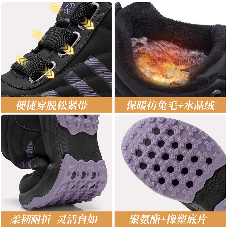 强人3515新款女鞋加绒棉鞋时尚三色可选黑色/米色/卡其267035