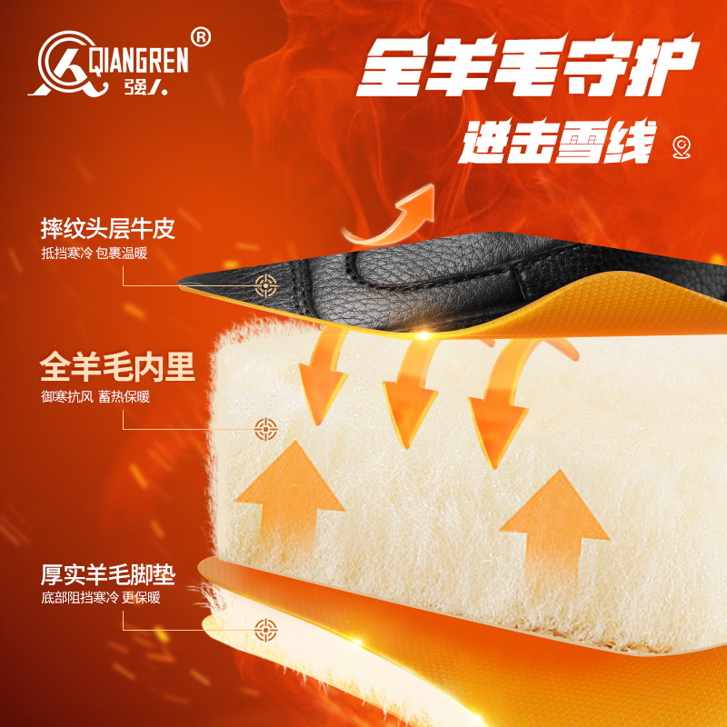 3515强人2025新款羊毛保暖鞋双色黑色/咖色 25QRH-091CE