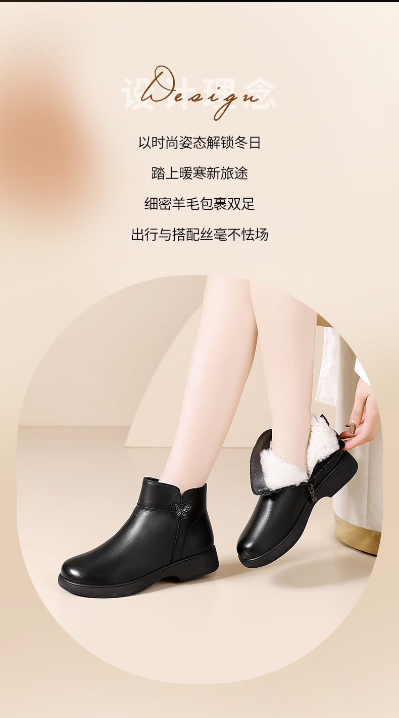 3515强人女鞋冬季真皮保暖高帮皮棉鞋羊毛鞋加绒加厚短靴 694001