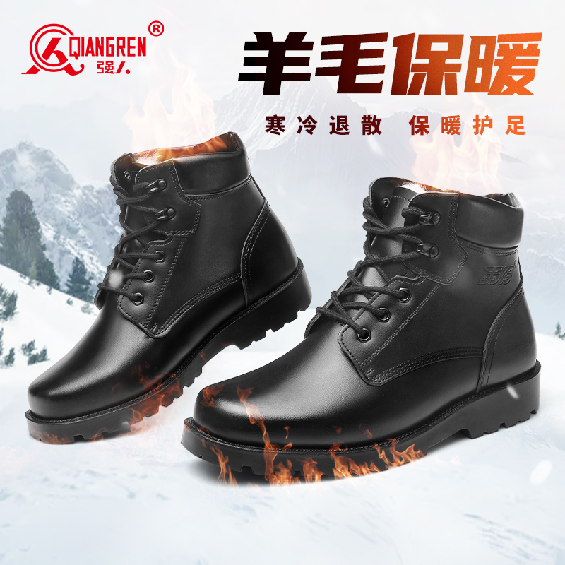 强人3515军迷靴户外工装男靴冬季加绒男棉鞋保暖防寒羊毛棉靴 D15070