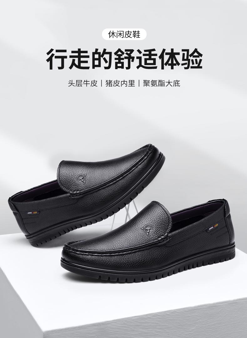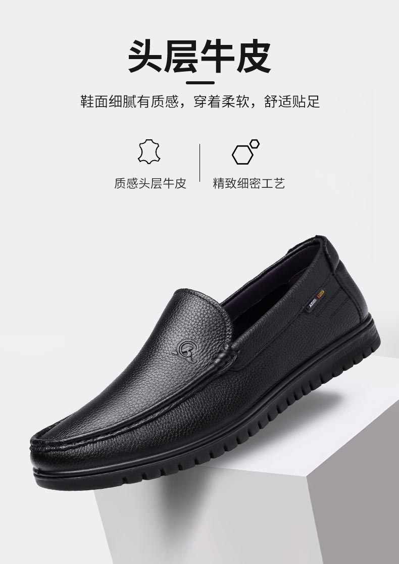 3515强人皮鞋真皮软底驾车鞋男士皮鞋轻便透气男单鞋一脚蹬皮鞋 351049