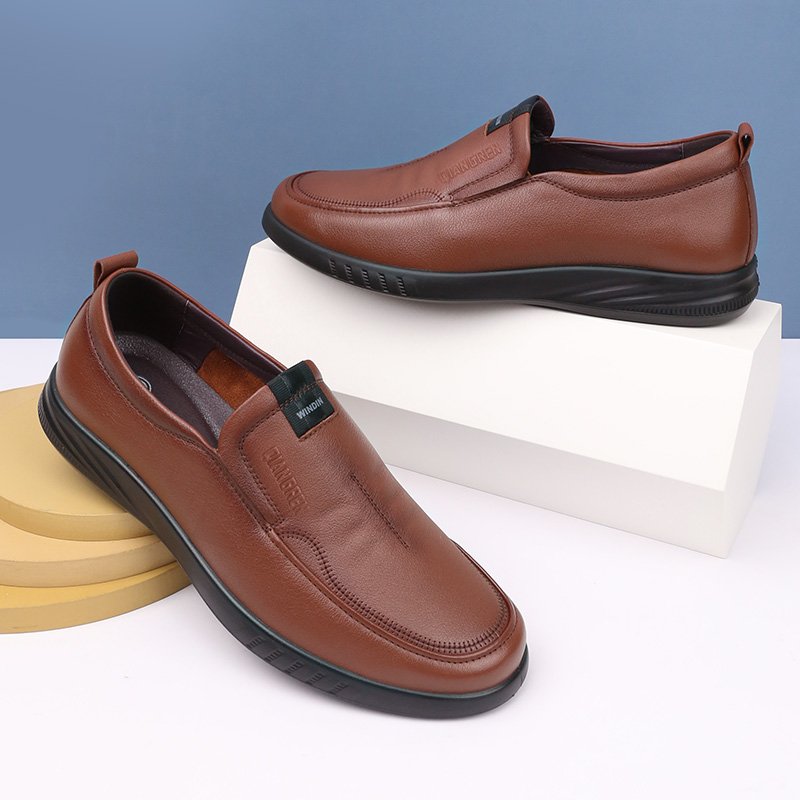 3515强人商务男休闲皮鞋牛皮透气舒适鞋子男士皮鞋轻便套脚鞋 351032