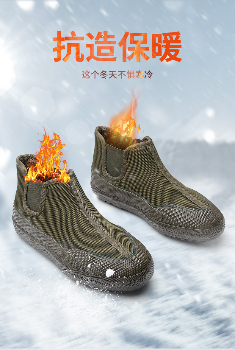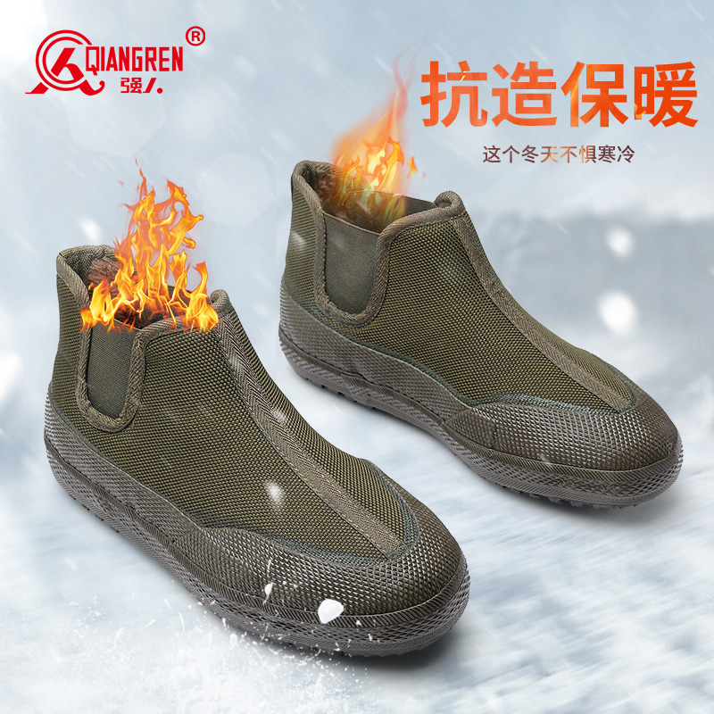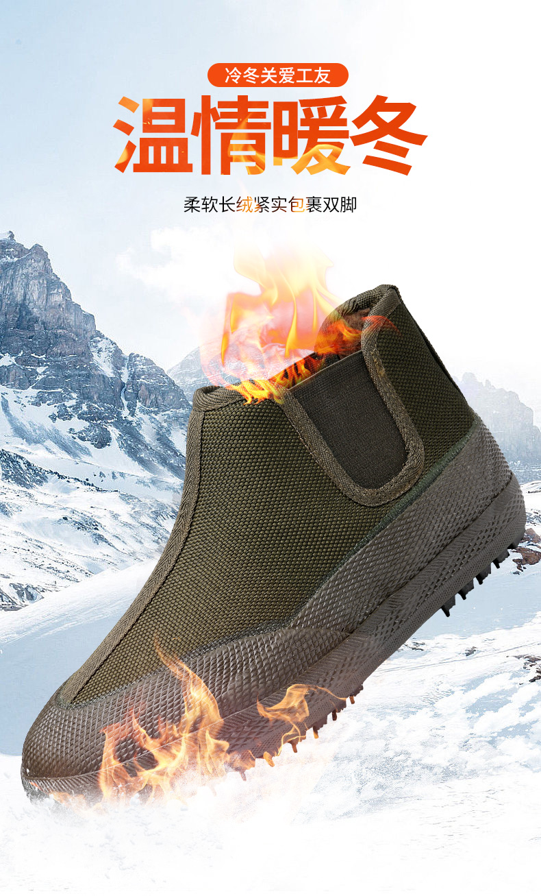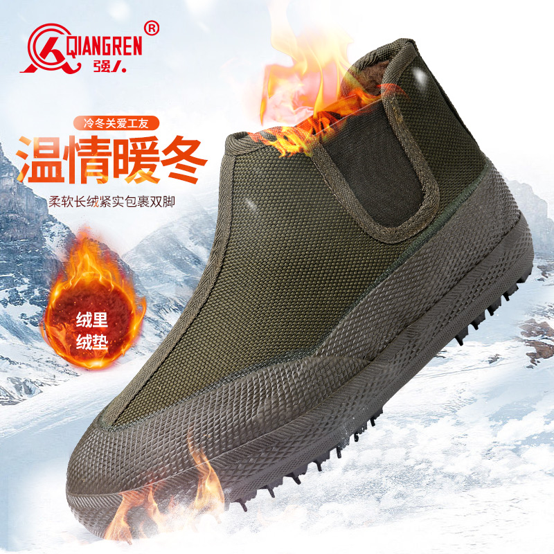 3515 强人男女冬季加绒解放鞋 一脚蹬耐磨防寒工装棉鞋 农田工地劳保工作鞋 YB-12M