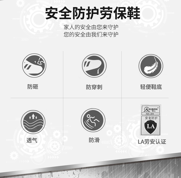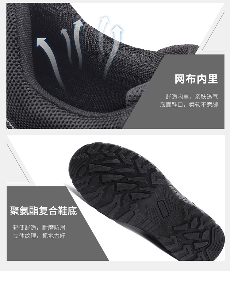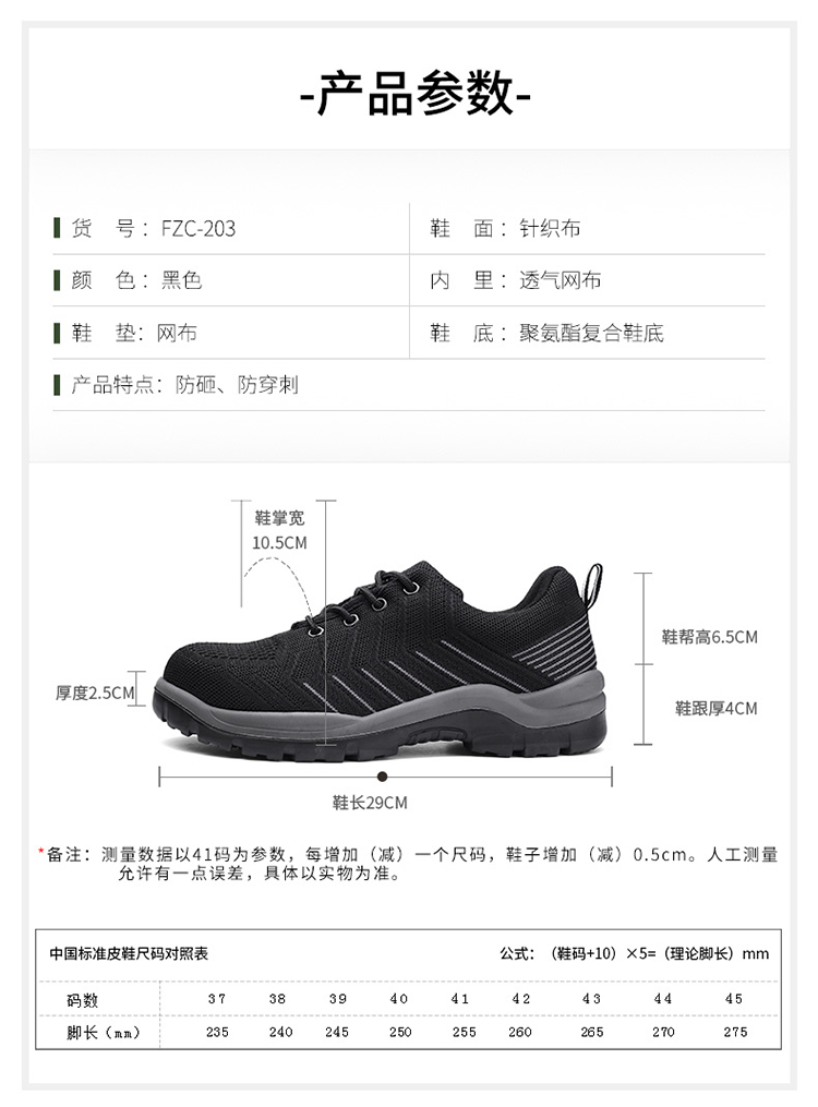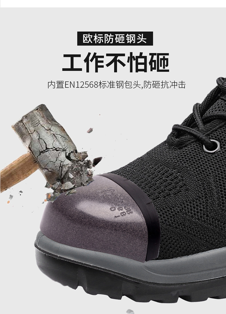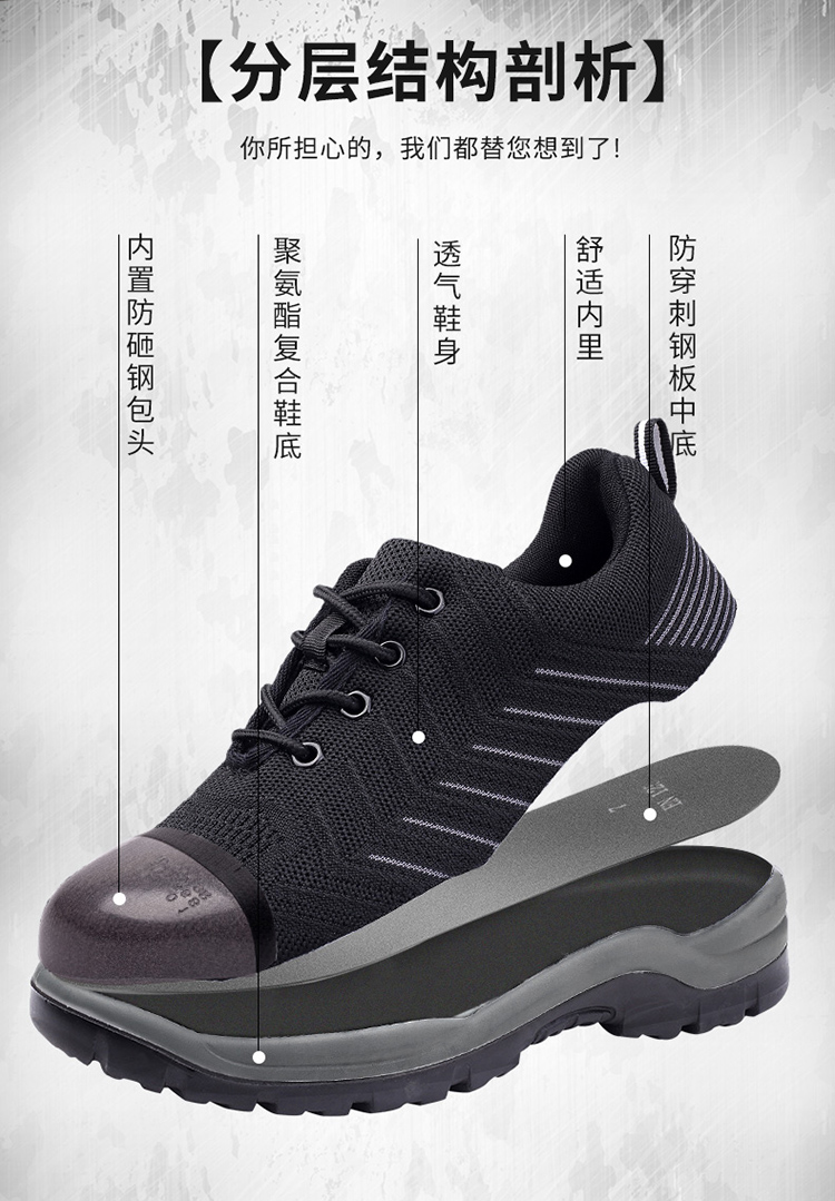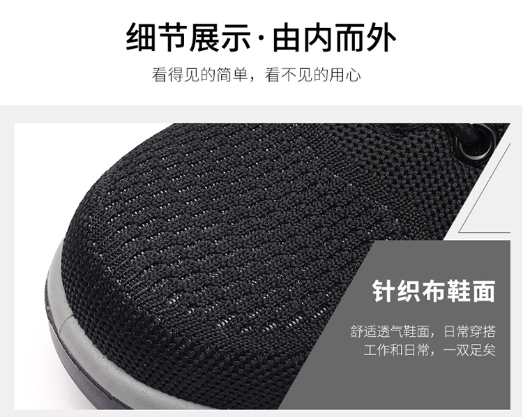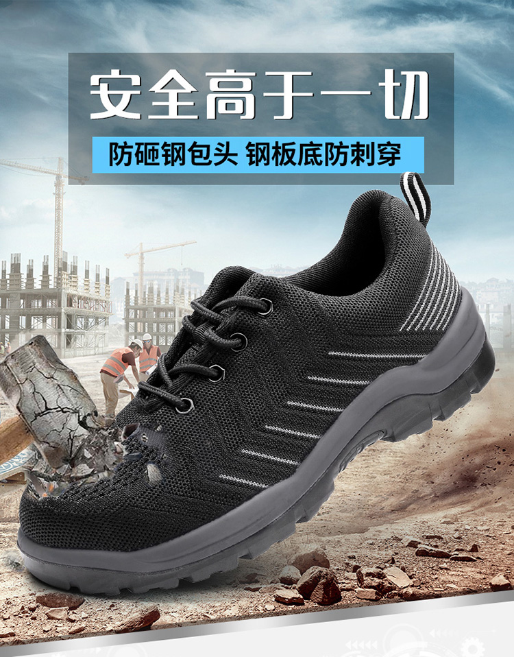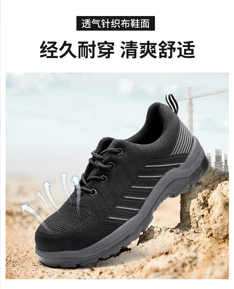 厂家直销强人安全鞋男 FZC-203 钢头钢底防砸防穿刺功能劳保鞋透气飞织日常工作男鞋 黑色