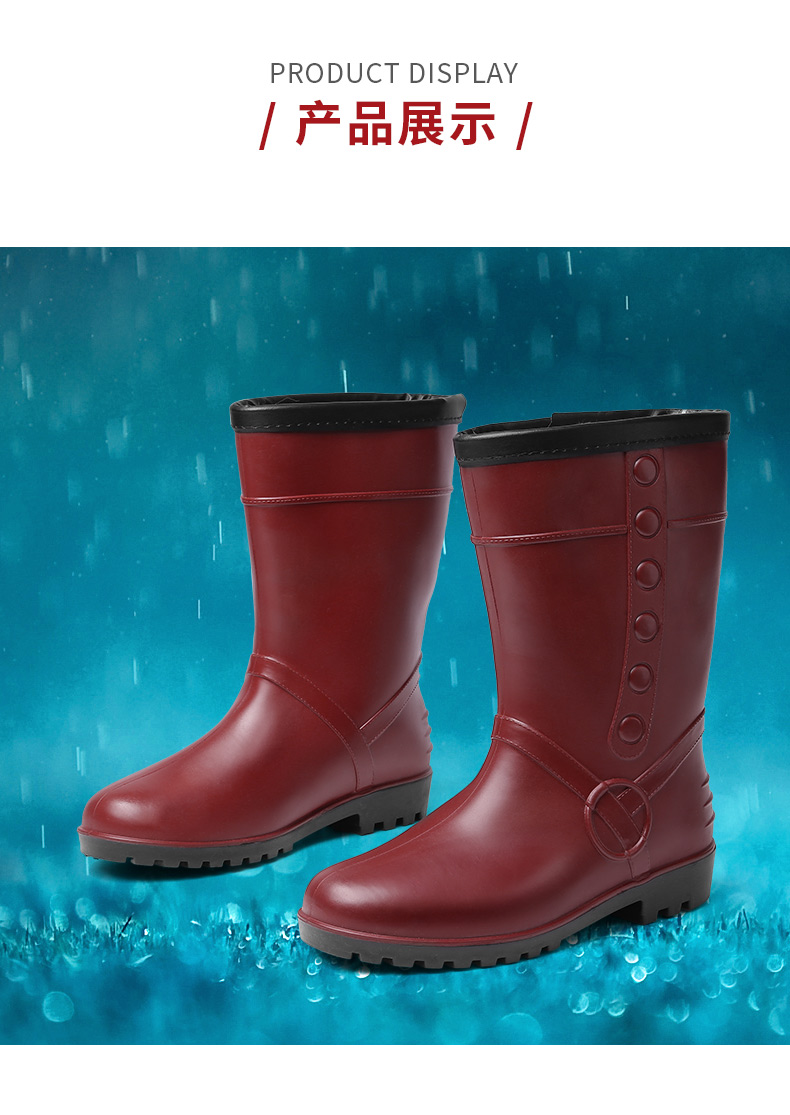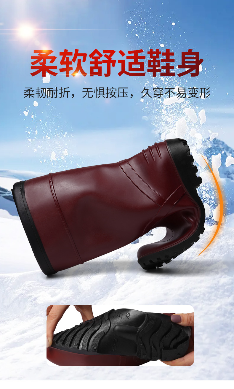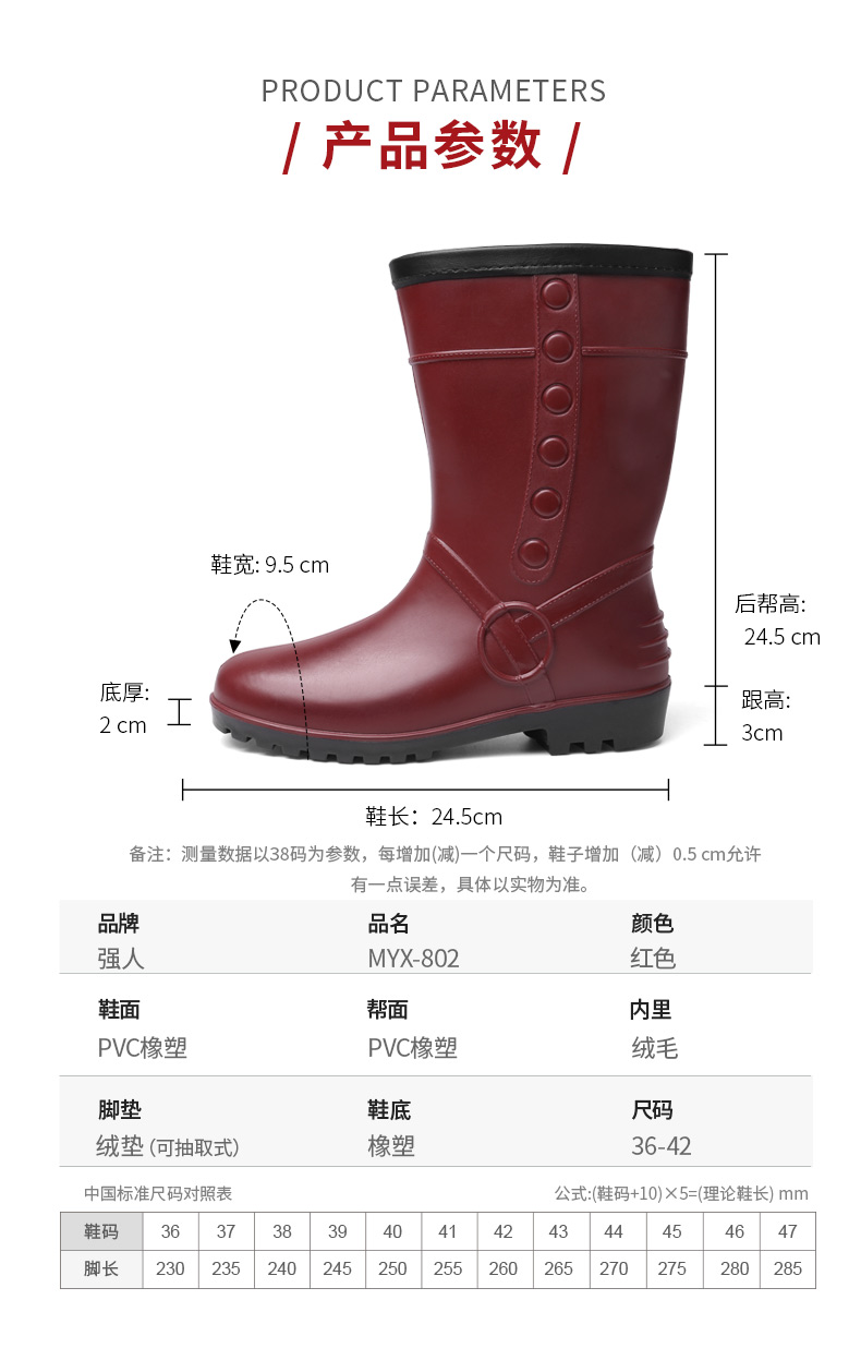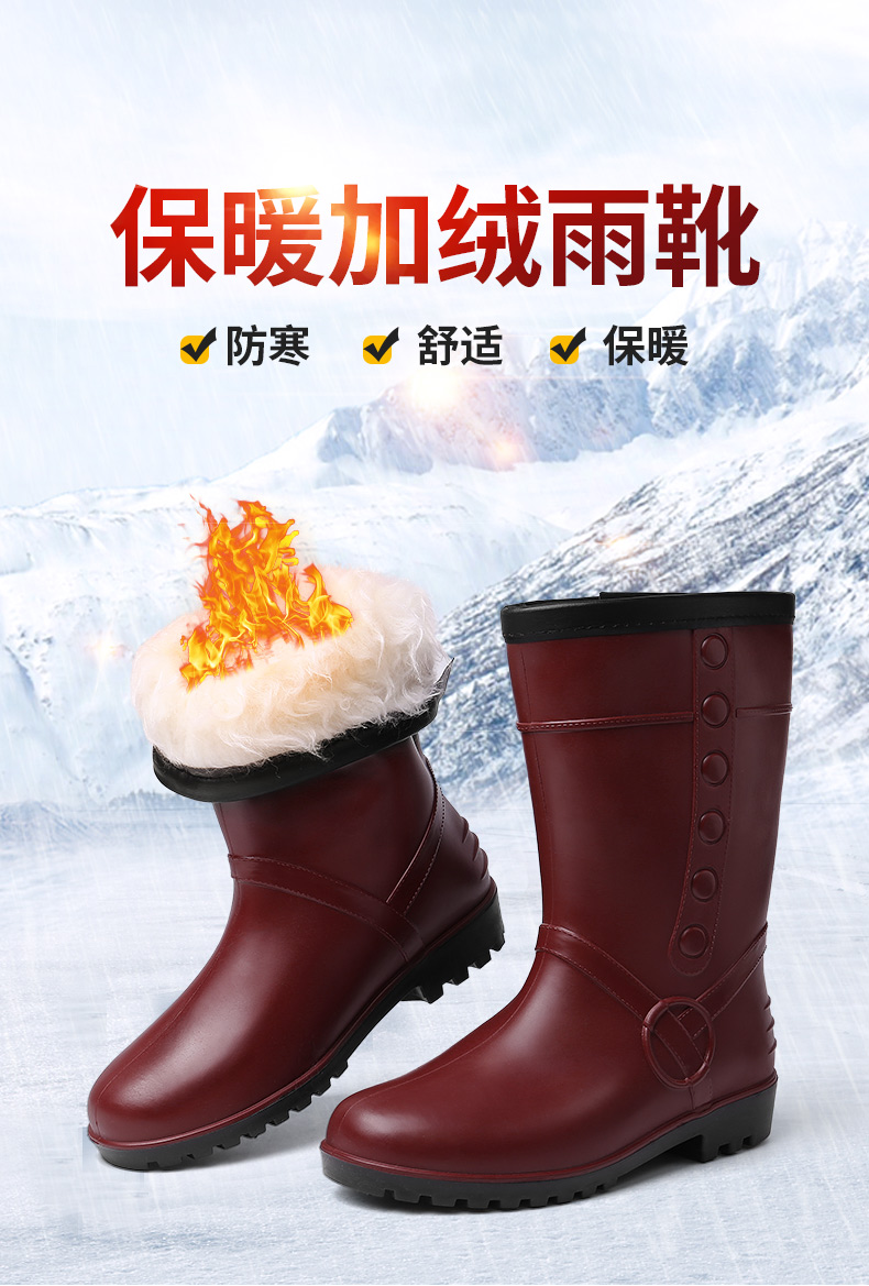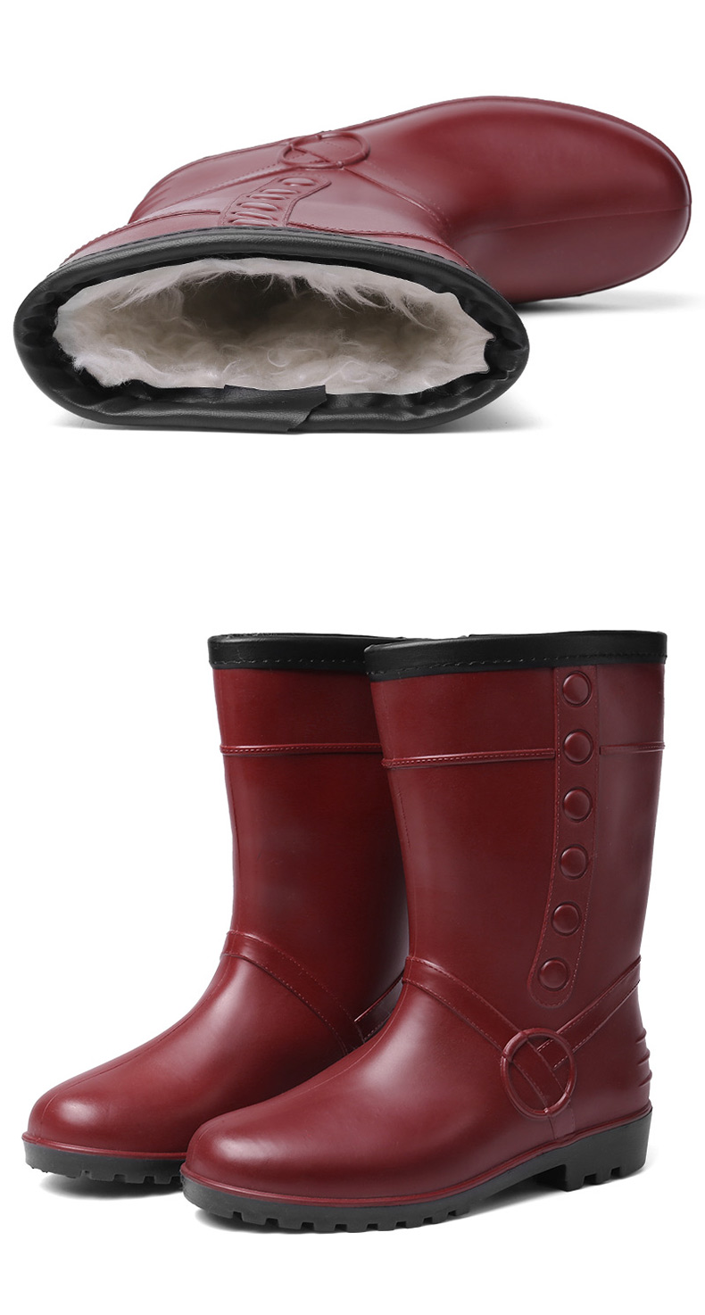 强人3515水鞋女冬季保暖棉雨靴 MYX-802 防水防滑中长筒雨鞋棉胶鞋加绒套鞋 803粉色 802红色
