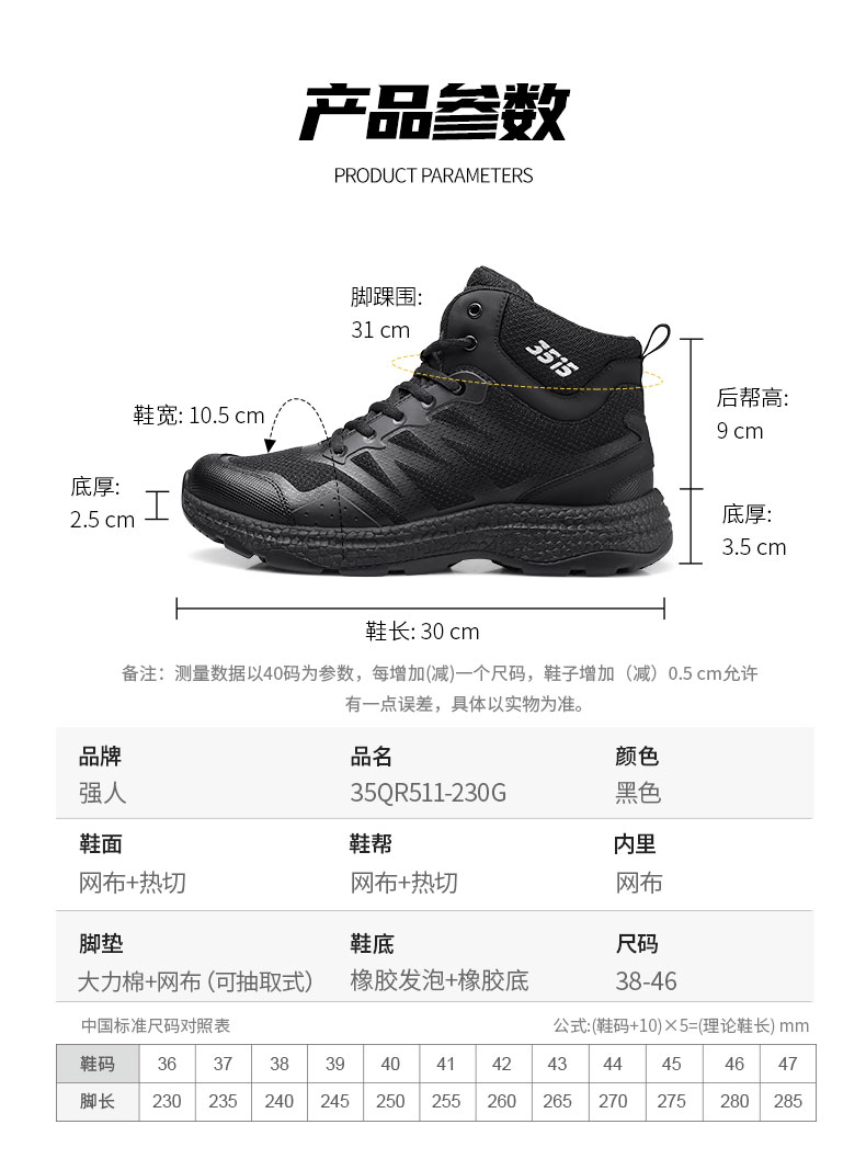 3515强人男靴户外训练鞋高帮防刺战术靴登山鞋新款厚底训练靴男511-230G