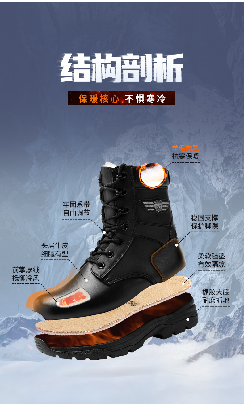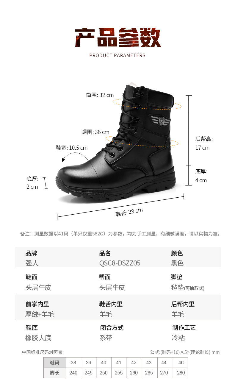 强人男高帮飞行靴8寸侧拉链户外耐磨保暖羊毛靴 QBC8-DSZZ05