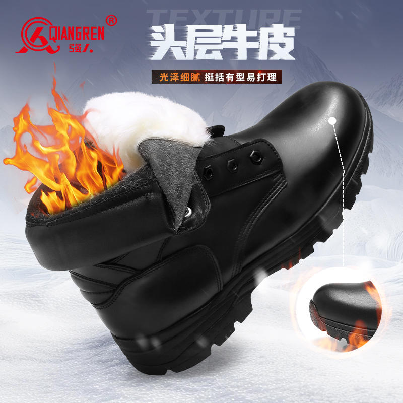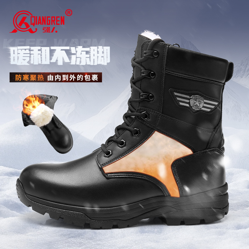 强人军迷靴男高帮飞行靴8寸侧拉链户外耐磨保暖羊毛靴 QBC8-DSZZ05