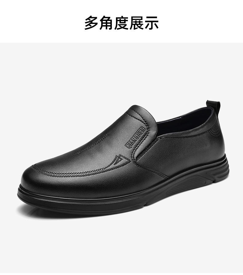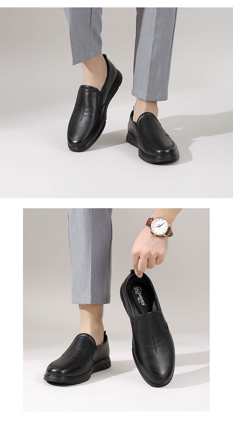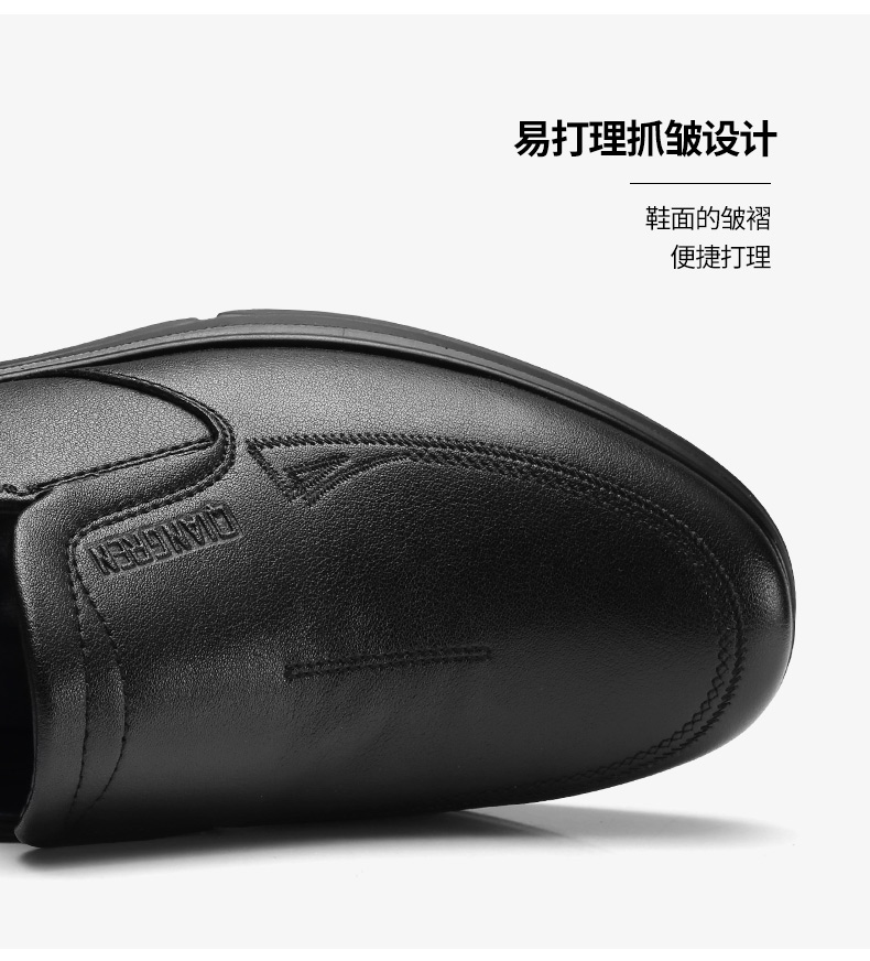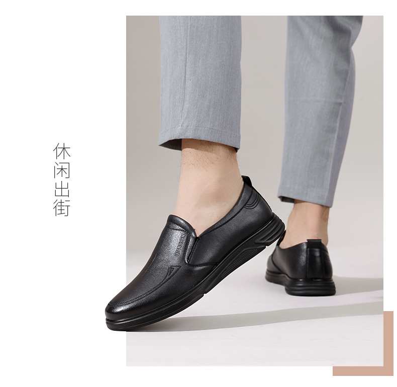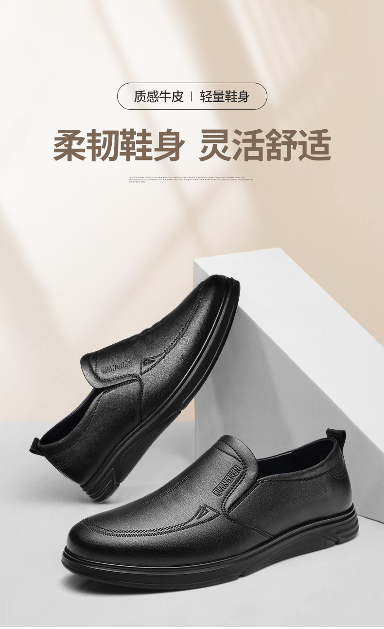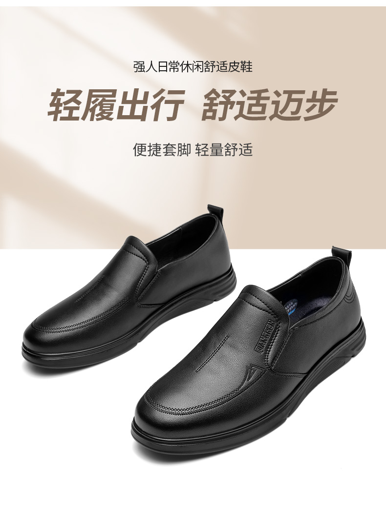 强人3515男士皮鞋一脚蹬商务休闲鞋低帮软底中年爸爸鞋男单鞋舒适351358