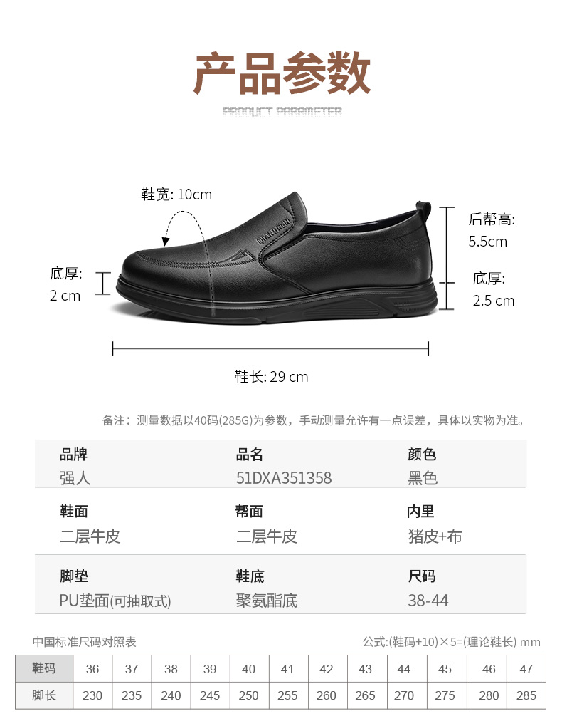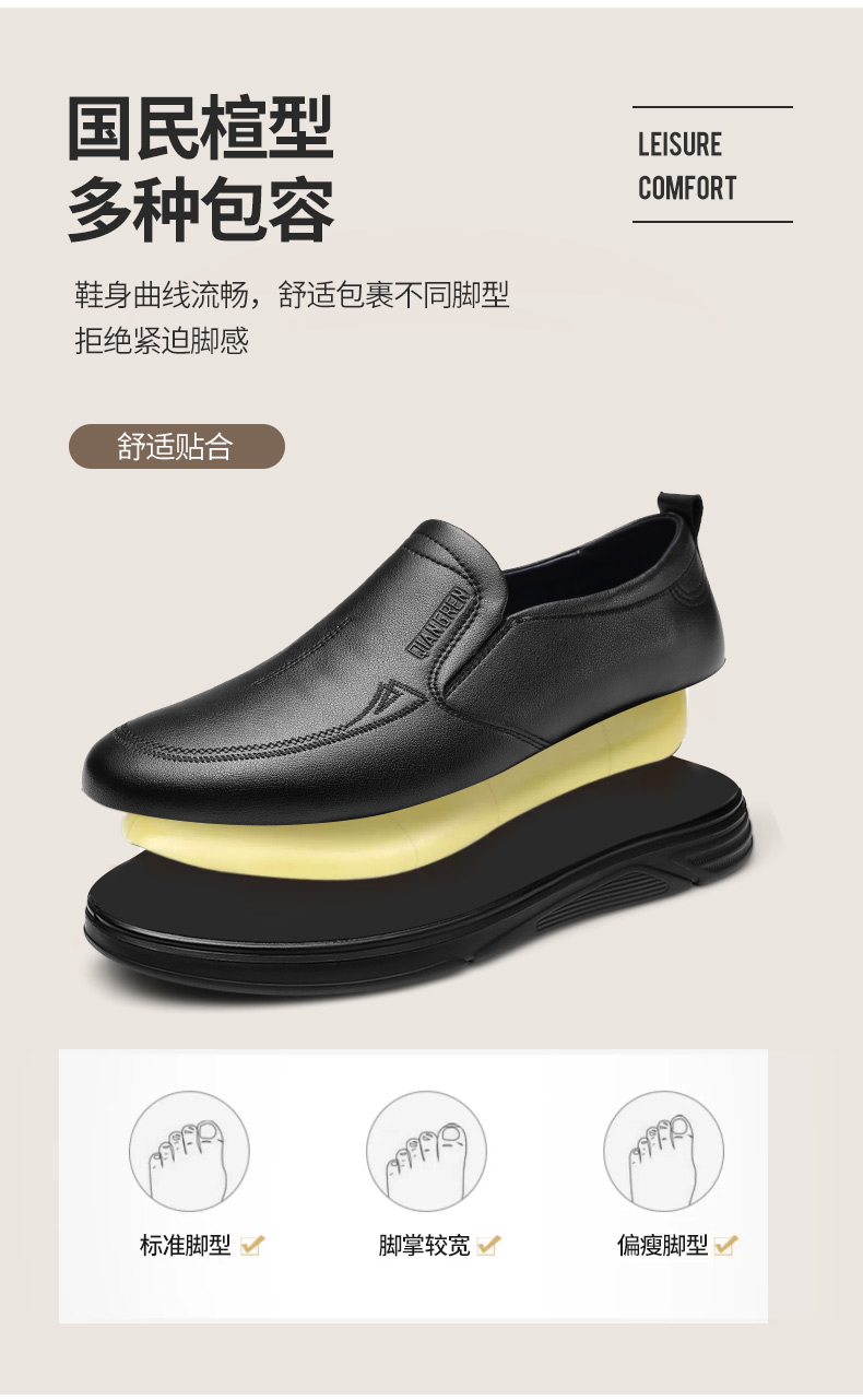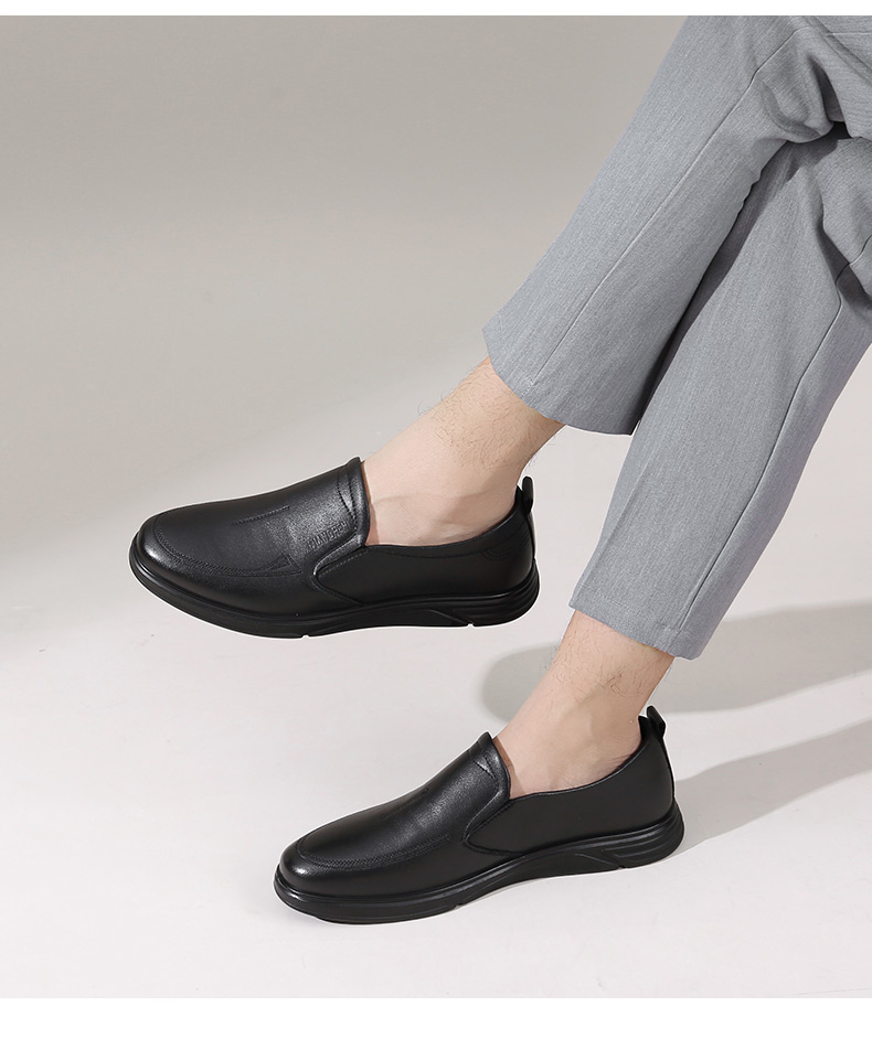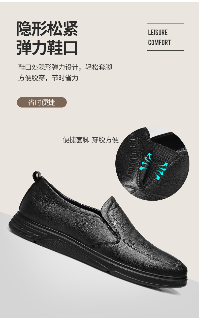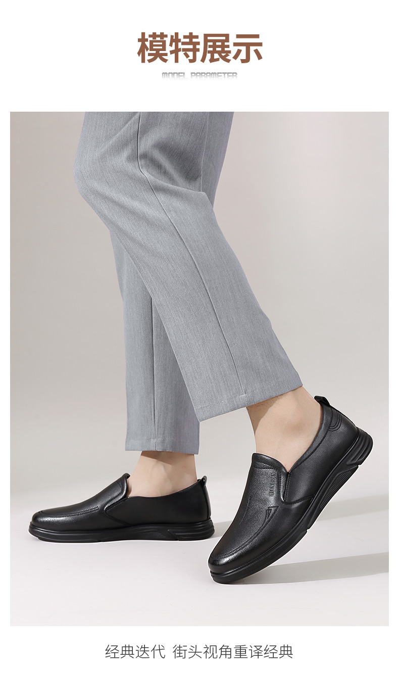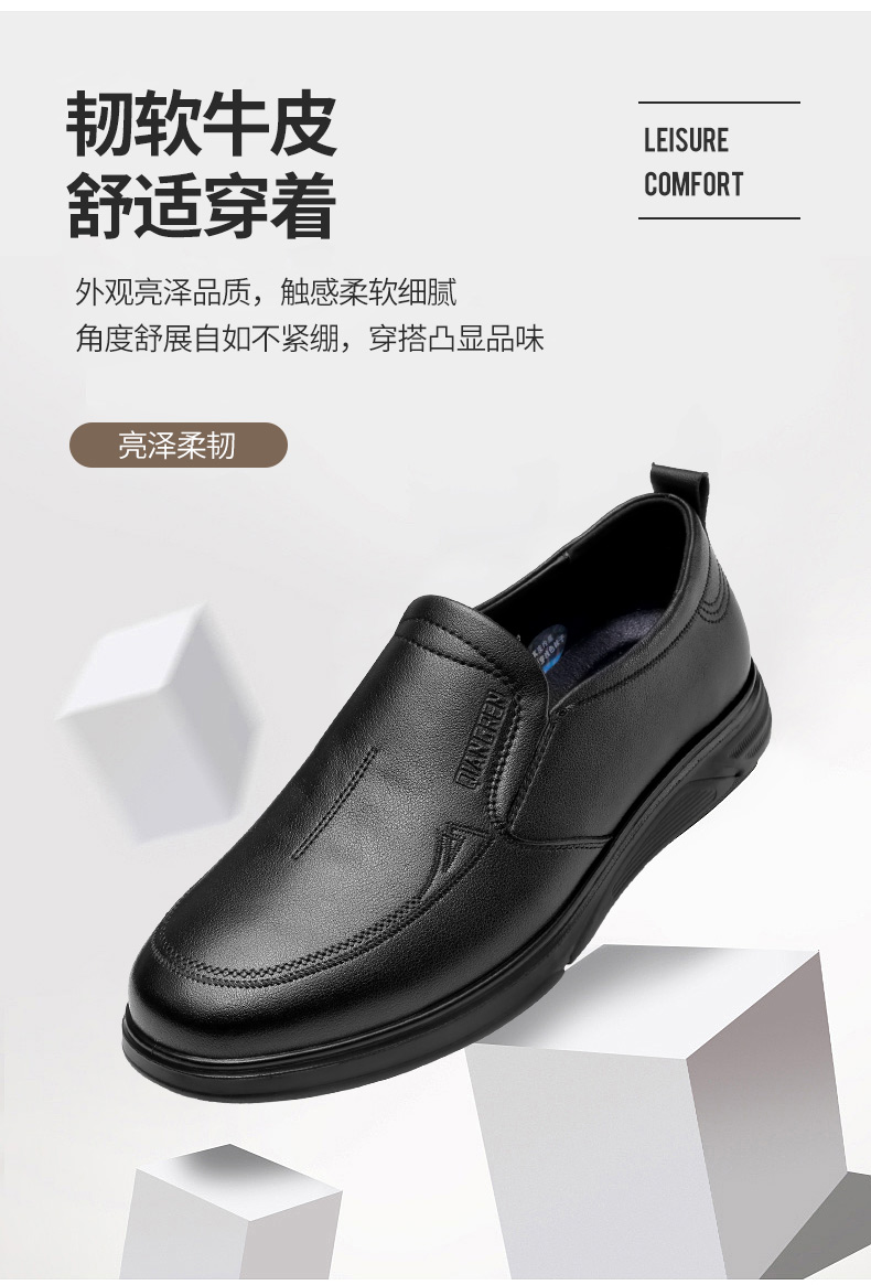 强人3515男士皮鞋一脚蹬商务休闲鞋低帮软底中年爸爸鞋男单鞋舒适351358