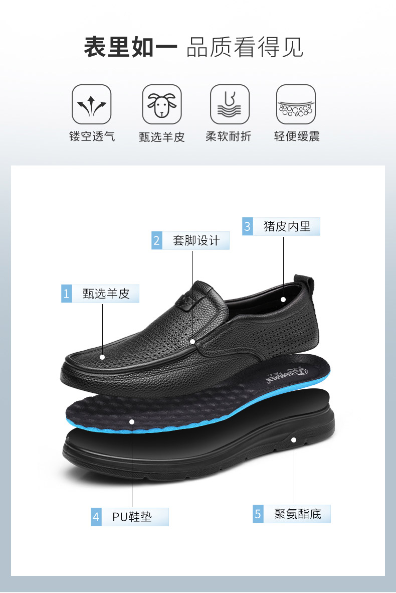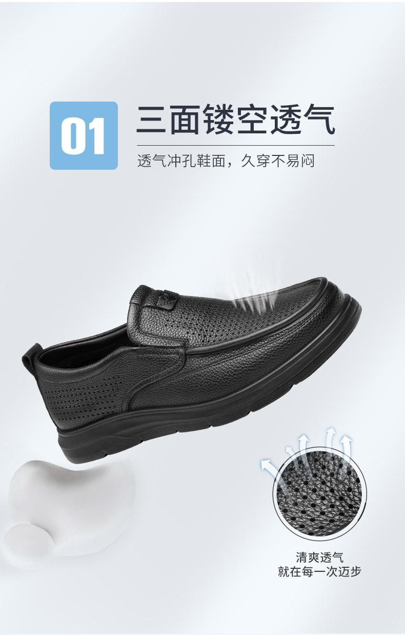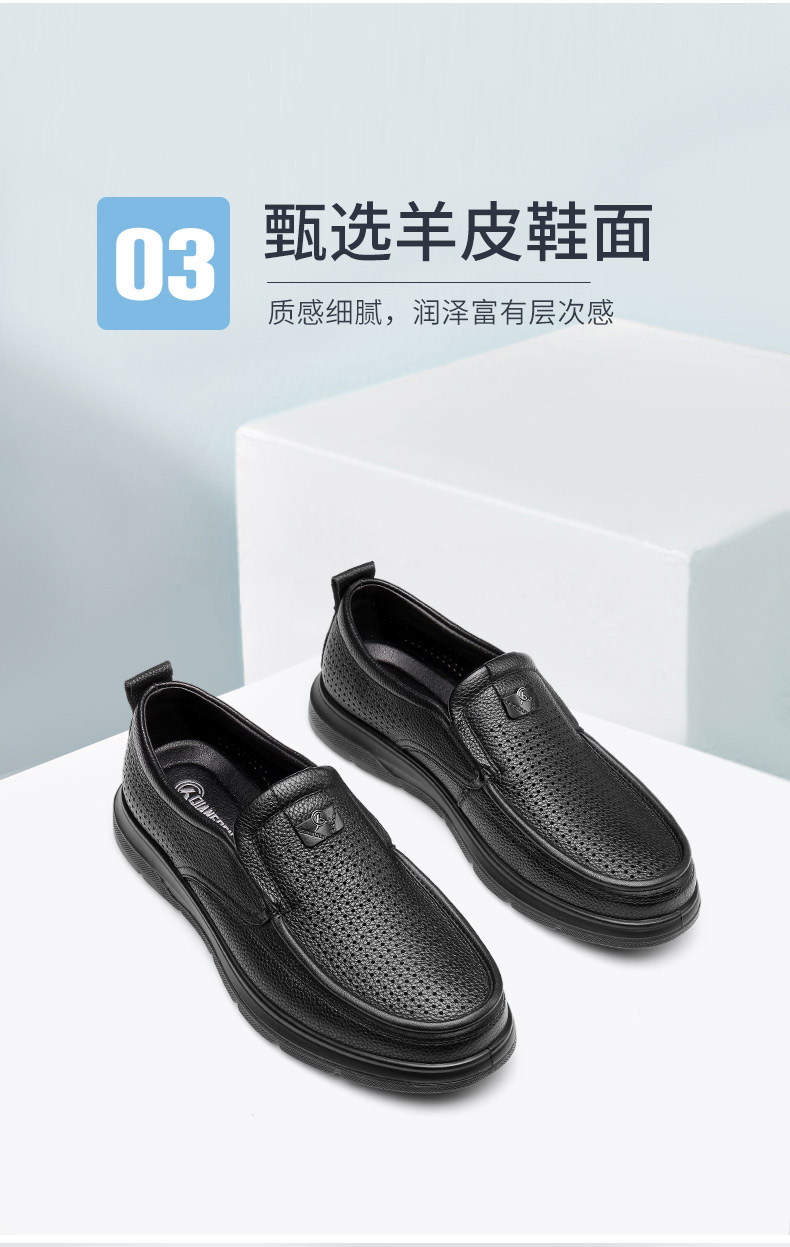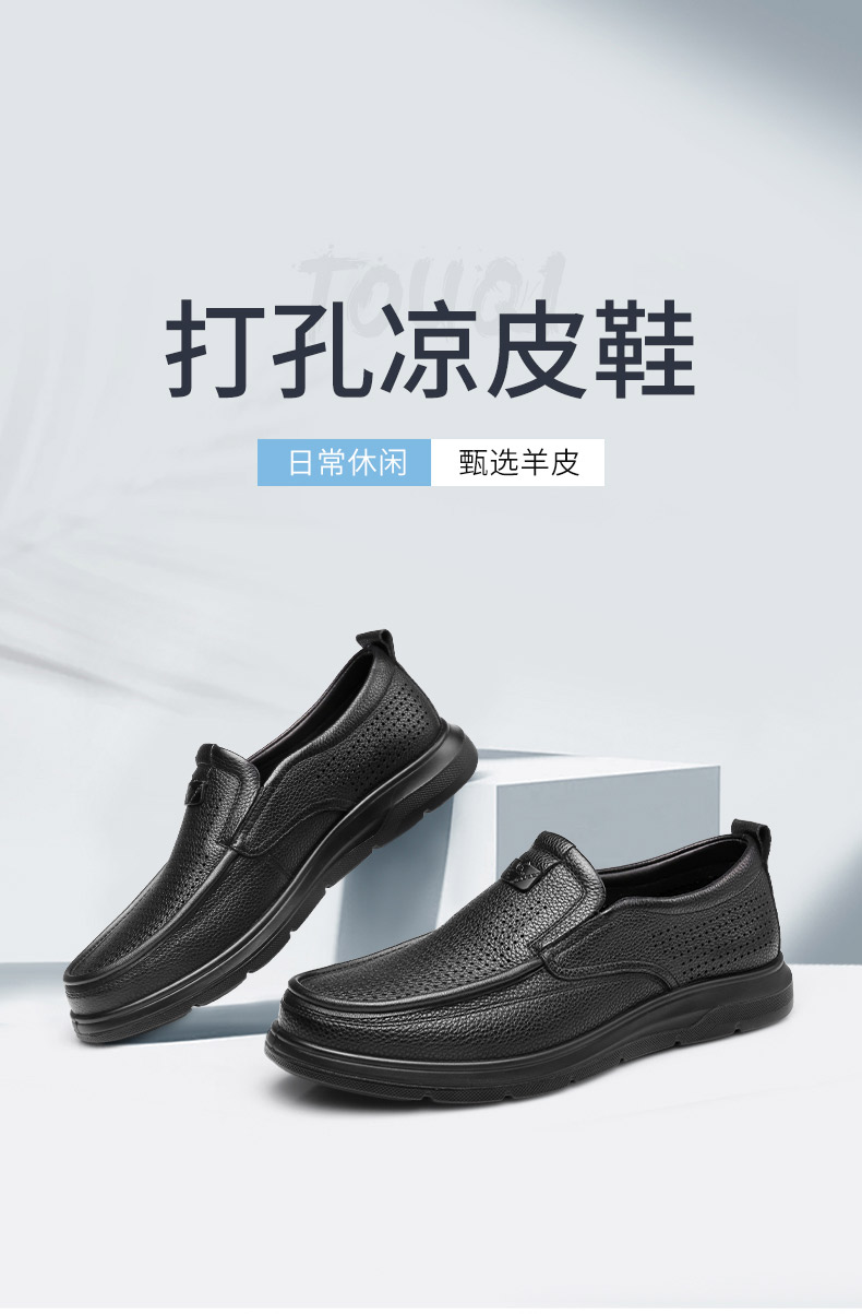 强人3515皮鞋男夏季透气一脚蹬皮鞋镂空软底羊皮凉皮鞋休闲皮鞋S2DXD351319