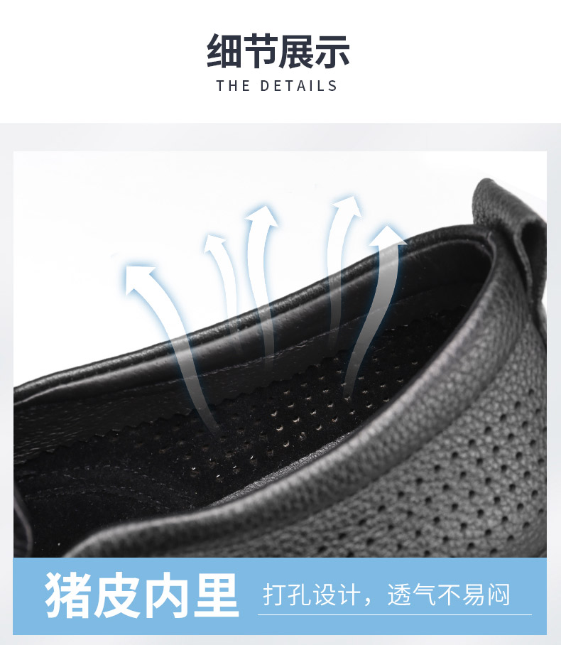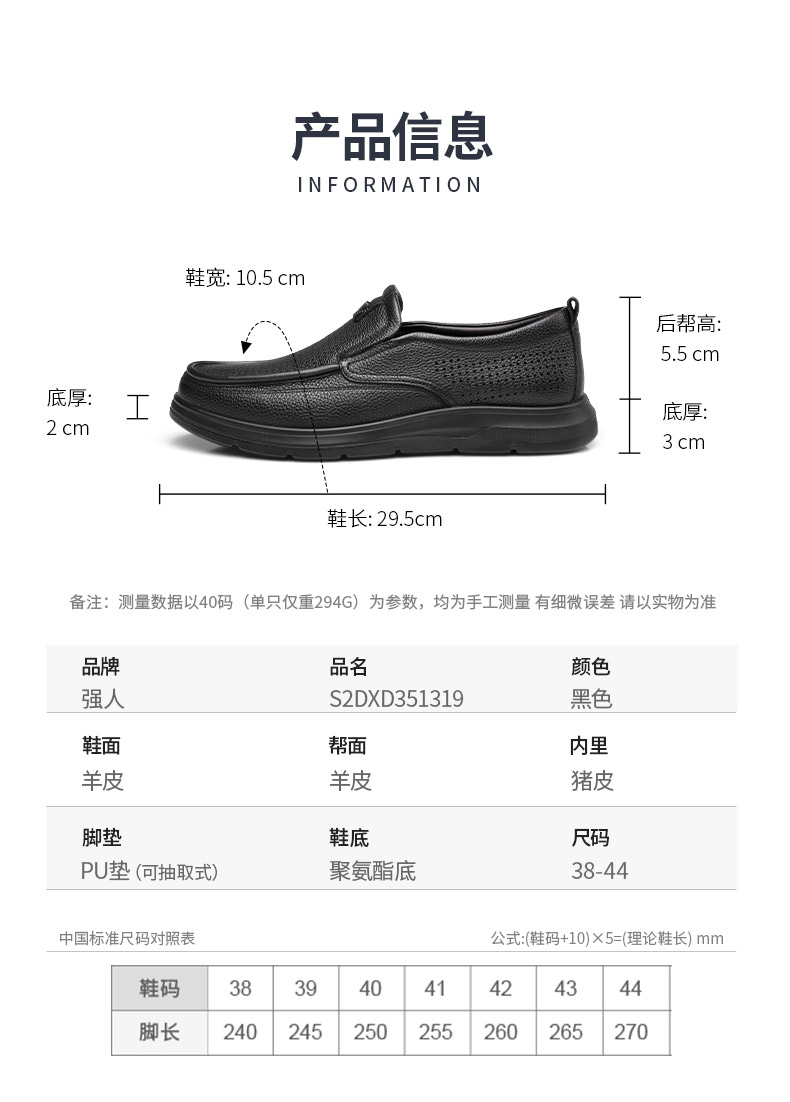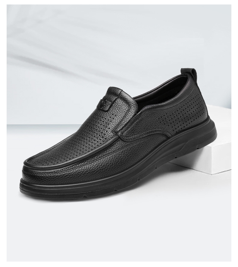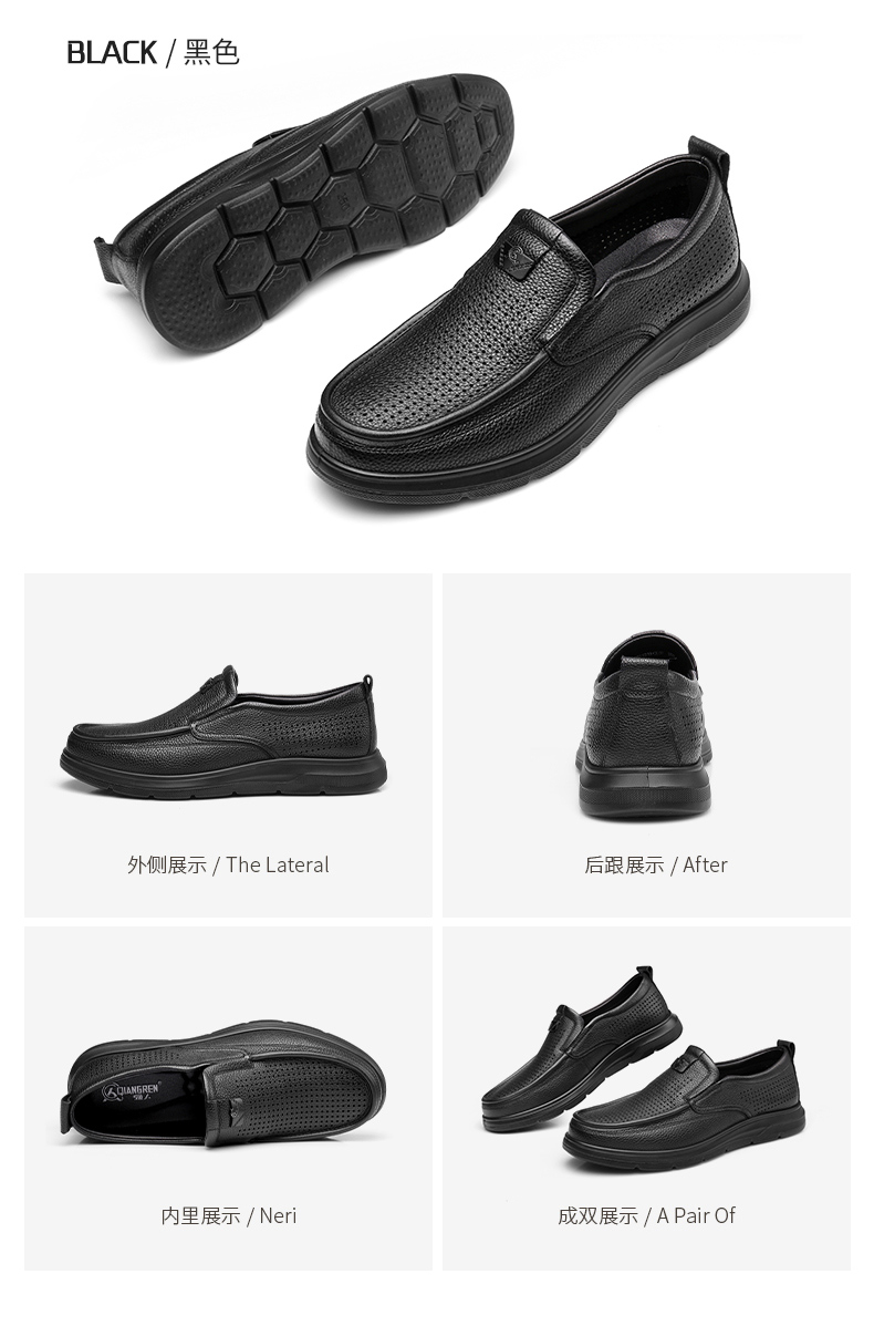 强人3515皮鞋男夏季透气一脚蹬皮鞋镂空软底羊皮凉皮鞋休闲皮鞋S2DXD351319