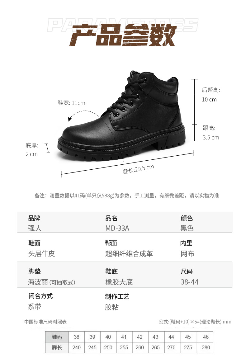 强人3515男靴马丁靴休闲百搭高帮鞋牛皮短靴英伦真皮靴子工装靴新款MD-33A