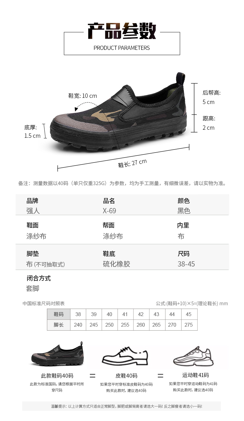 强人3515休闲鞋男套脚软底户外工作鞋耐磨解放鞋工地鞋劳保鞋X-69