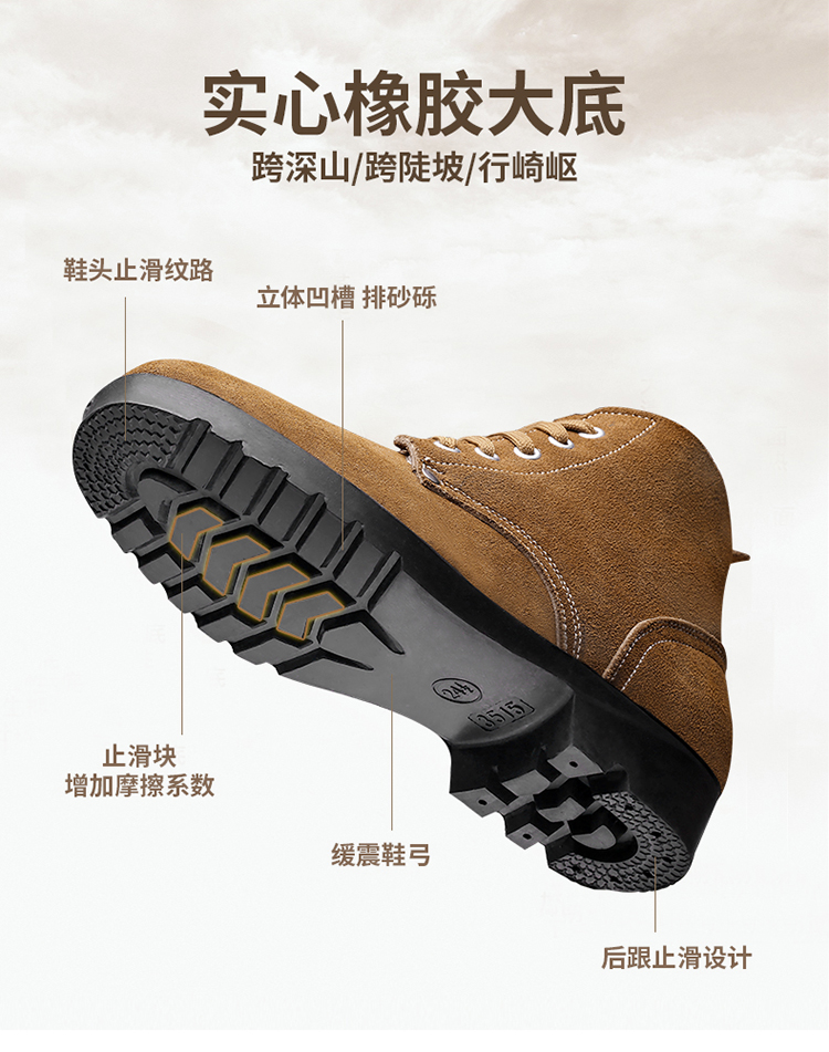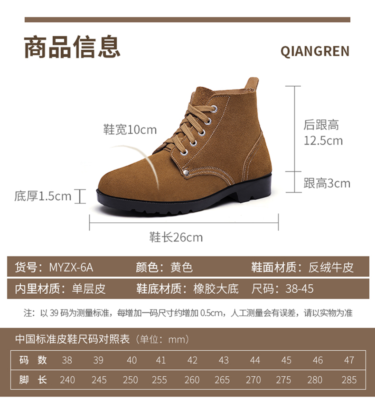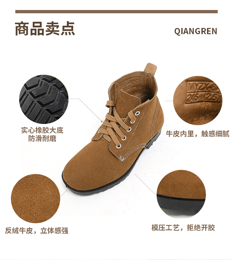 强人3515真皮复古大头鞋男耐磨防滑户外工作鞋男士反绒皮干活鞋子MYZX-6A