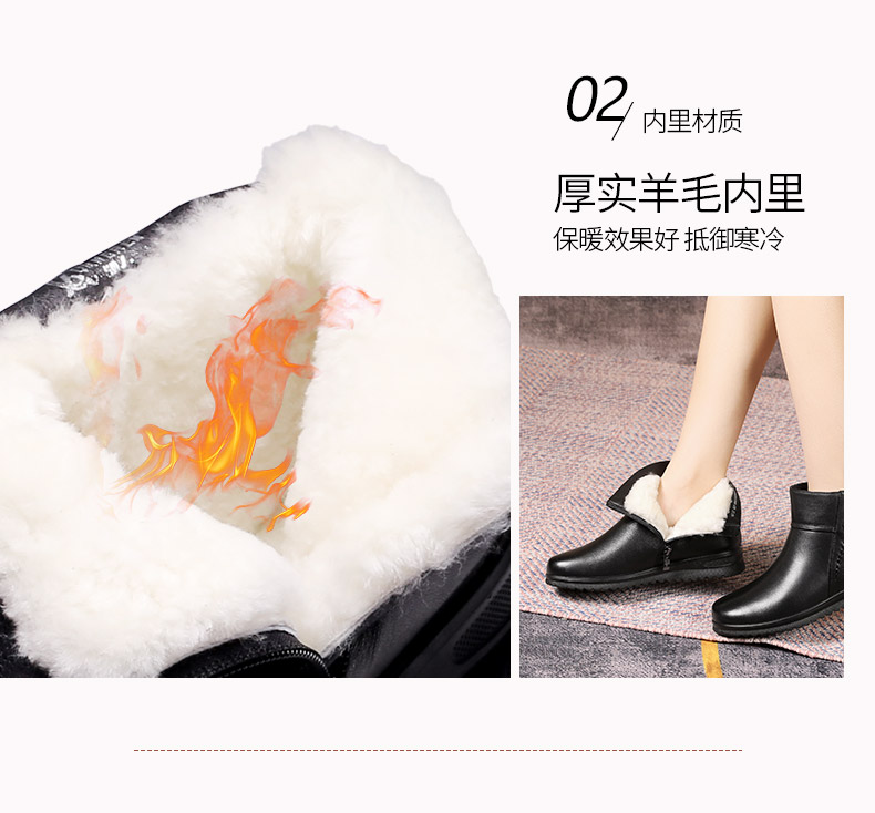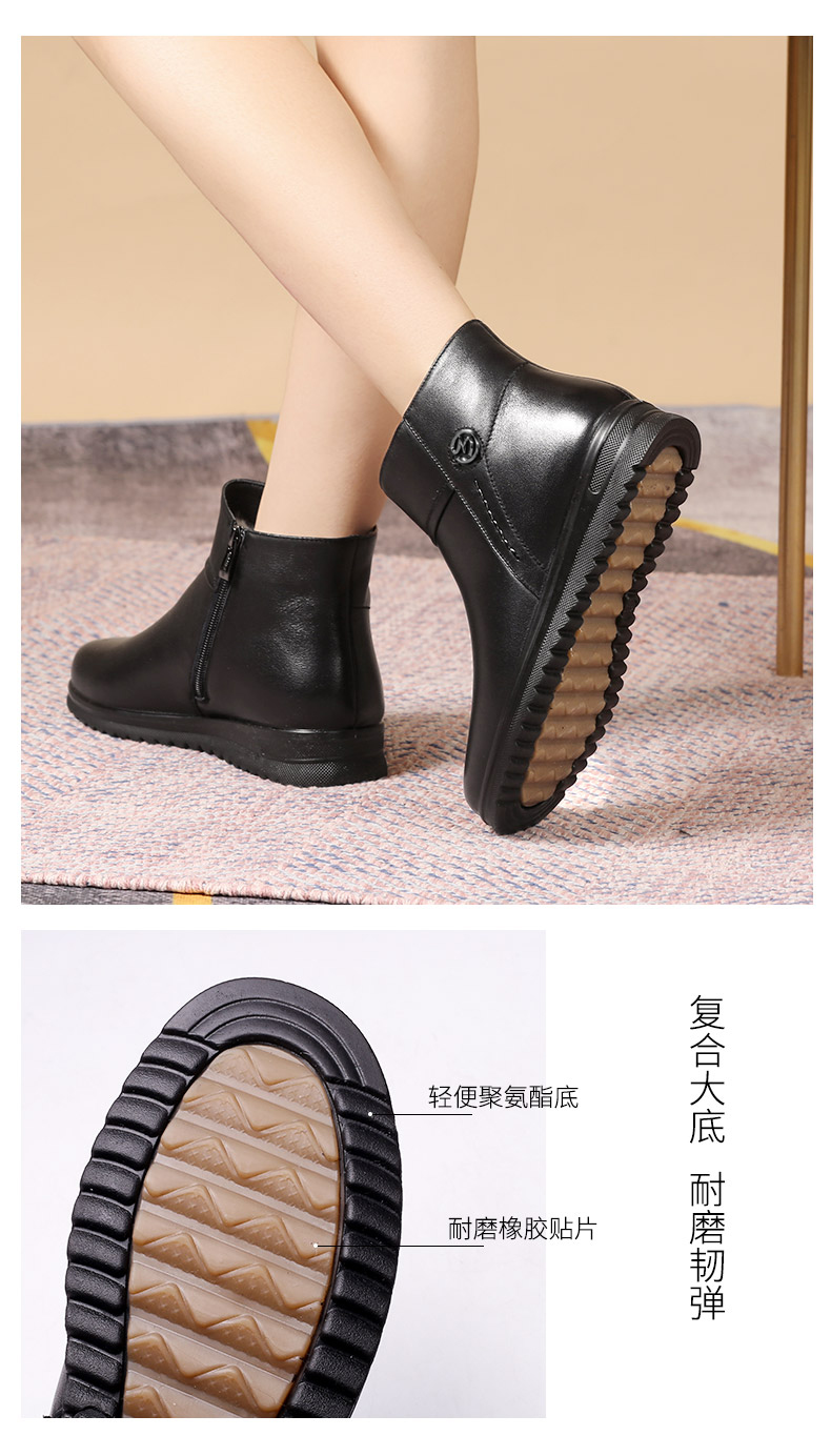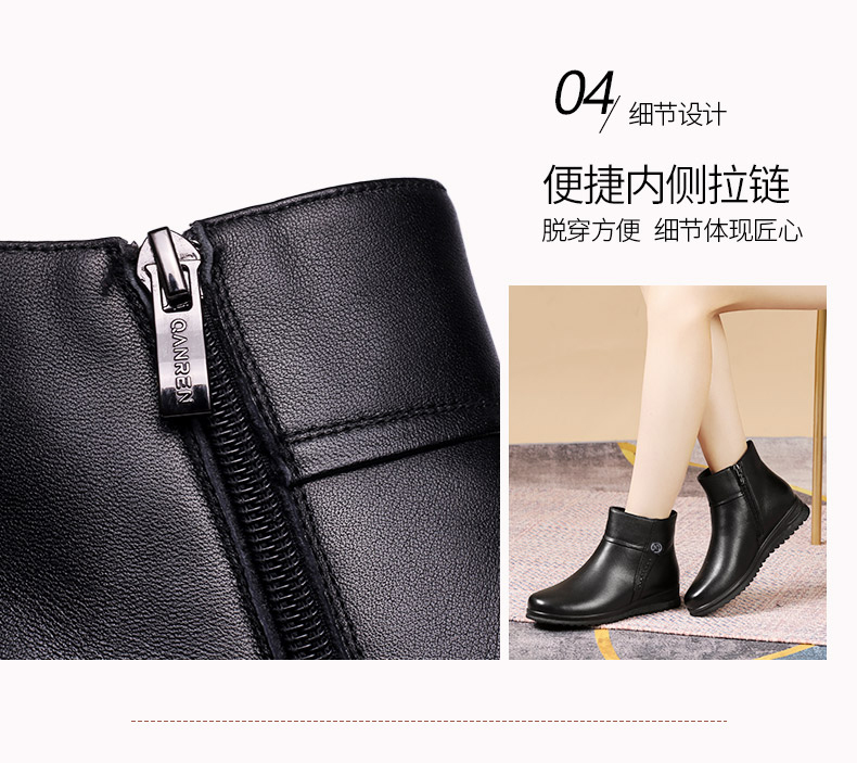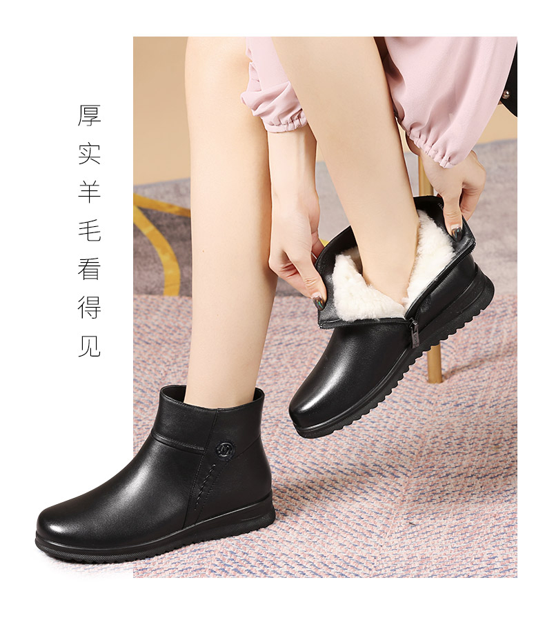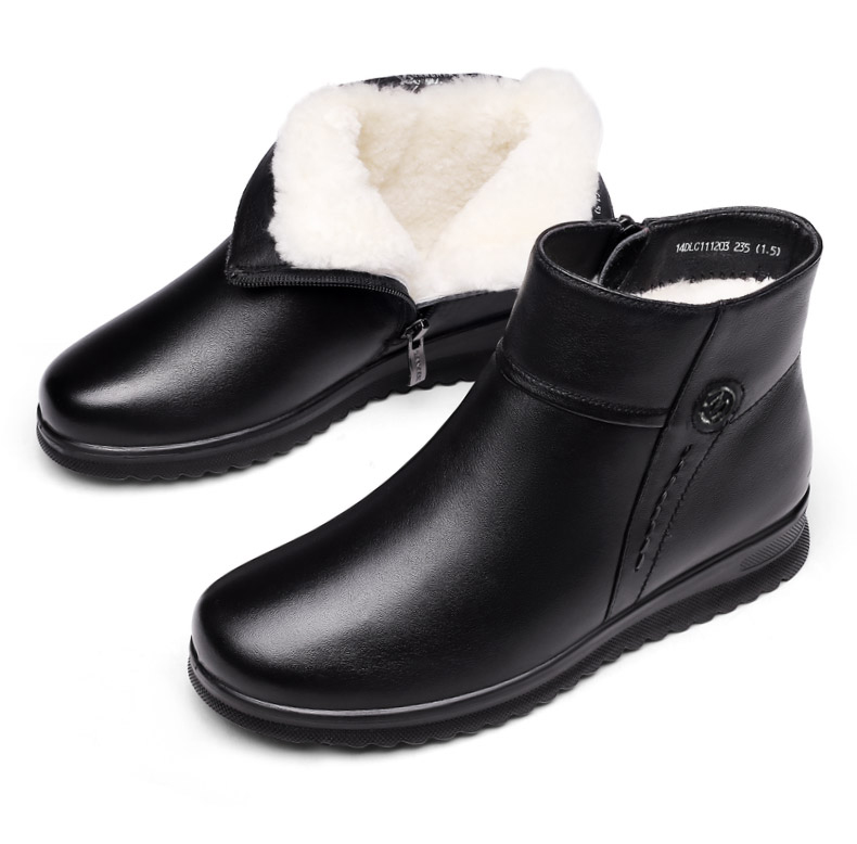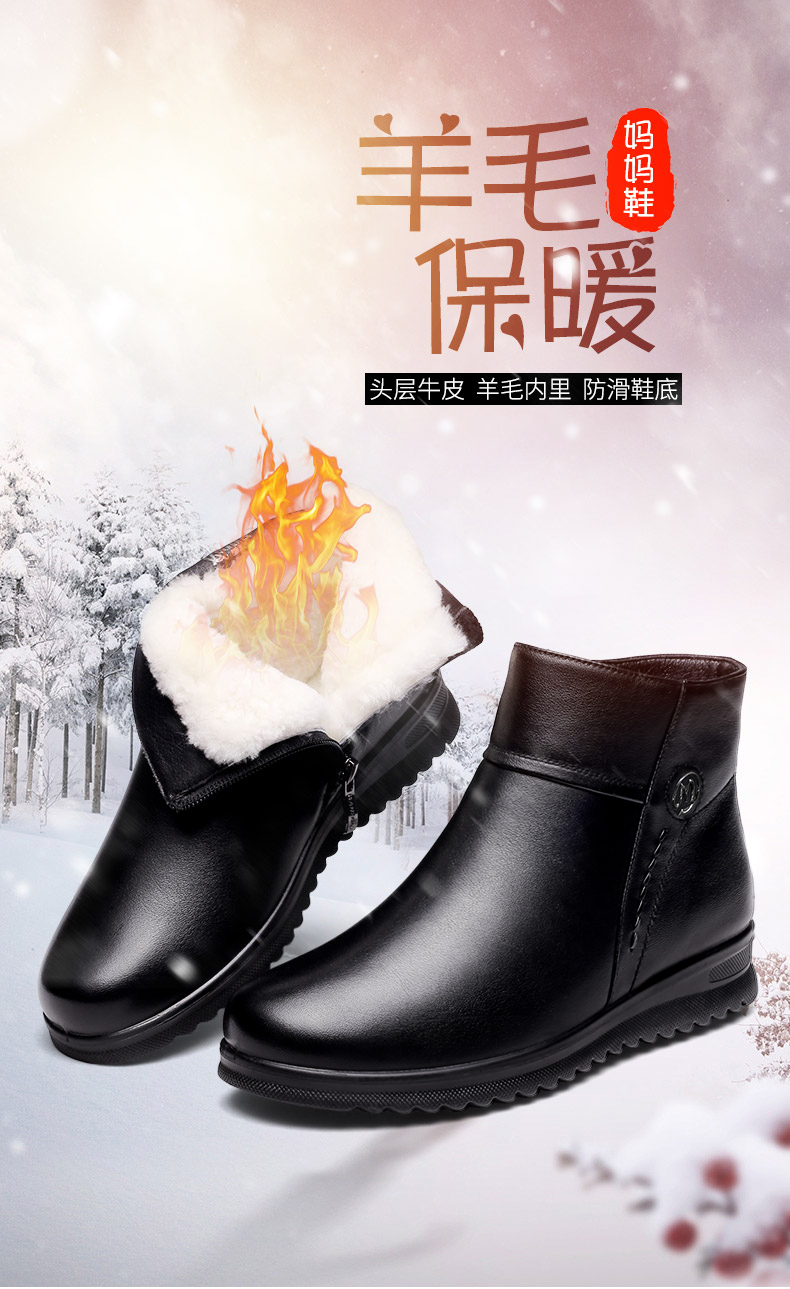 强人3515女冬季保暖羊毛棉鞋牛皮加绒短靴中老年防滑靴子女111203