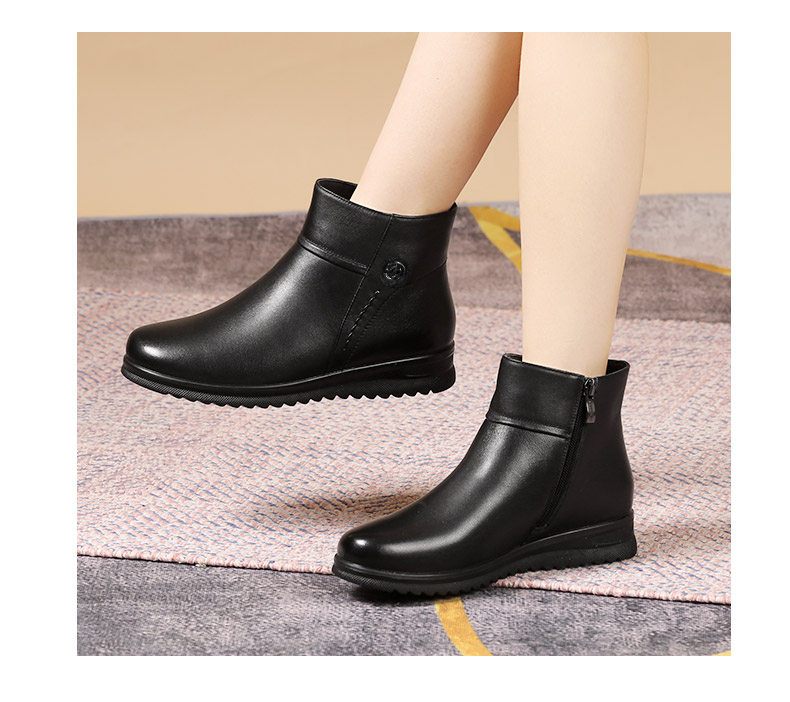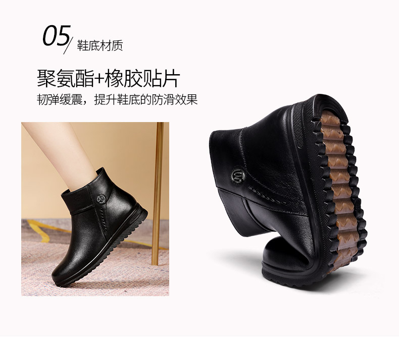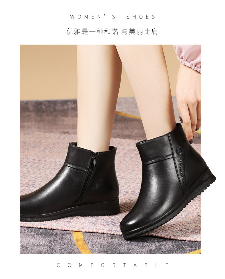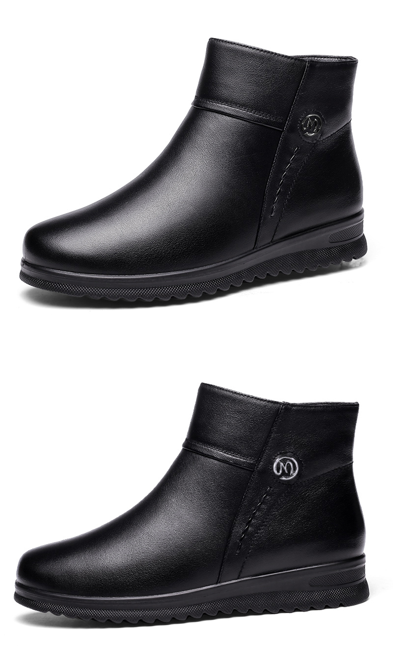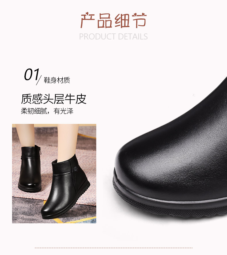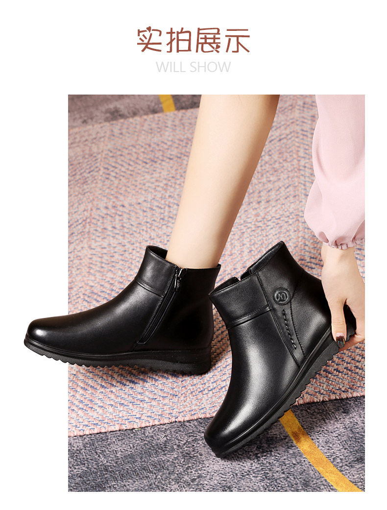 强人3515女冬季保暖羊毛棉鞋牛皮加绒短靴中老年防滑靴子女111203