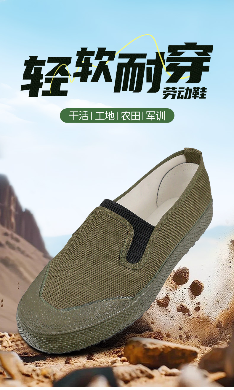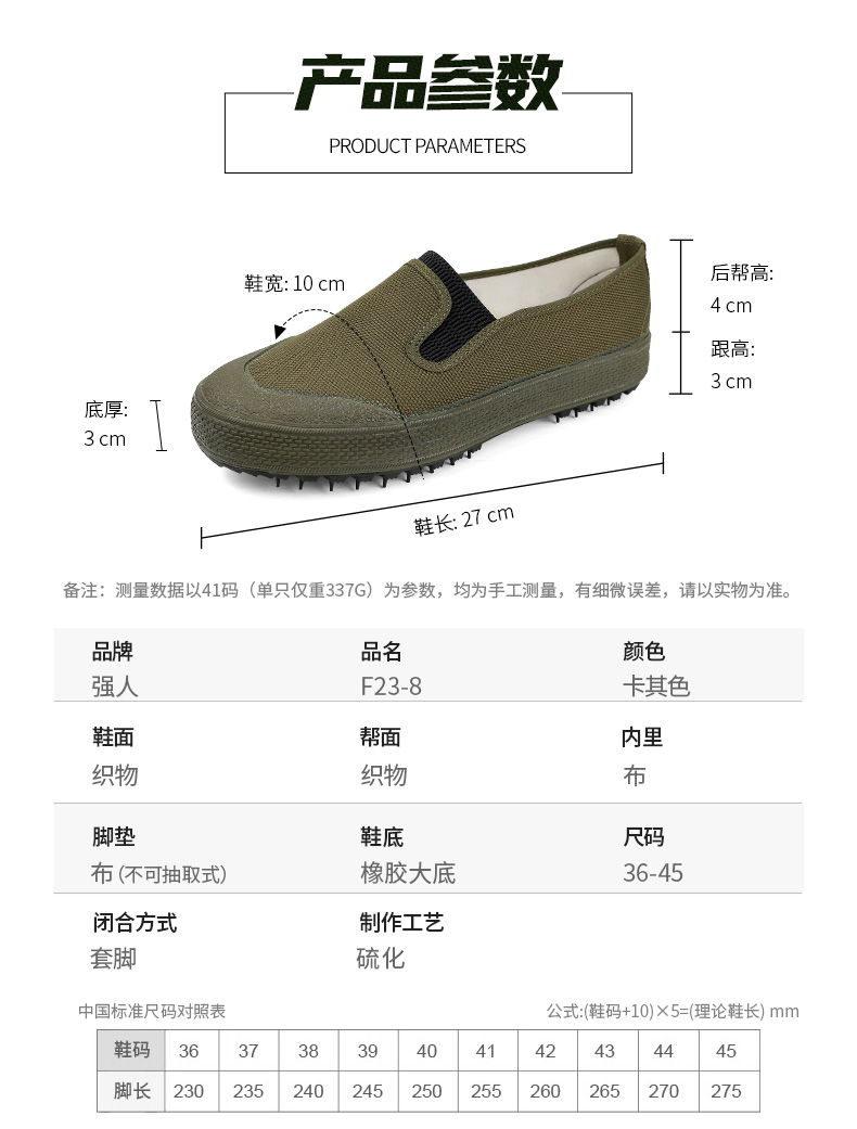强人3515解放鞋男女春秋套脚软底农田胶鞋耐磨透气户外工作帆布鞋F23-8