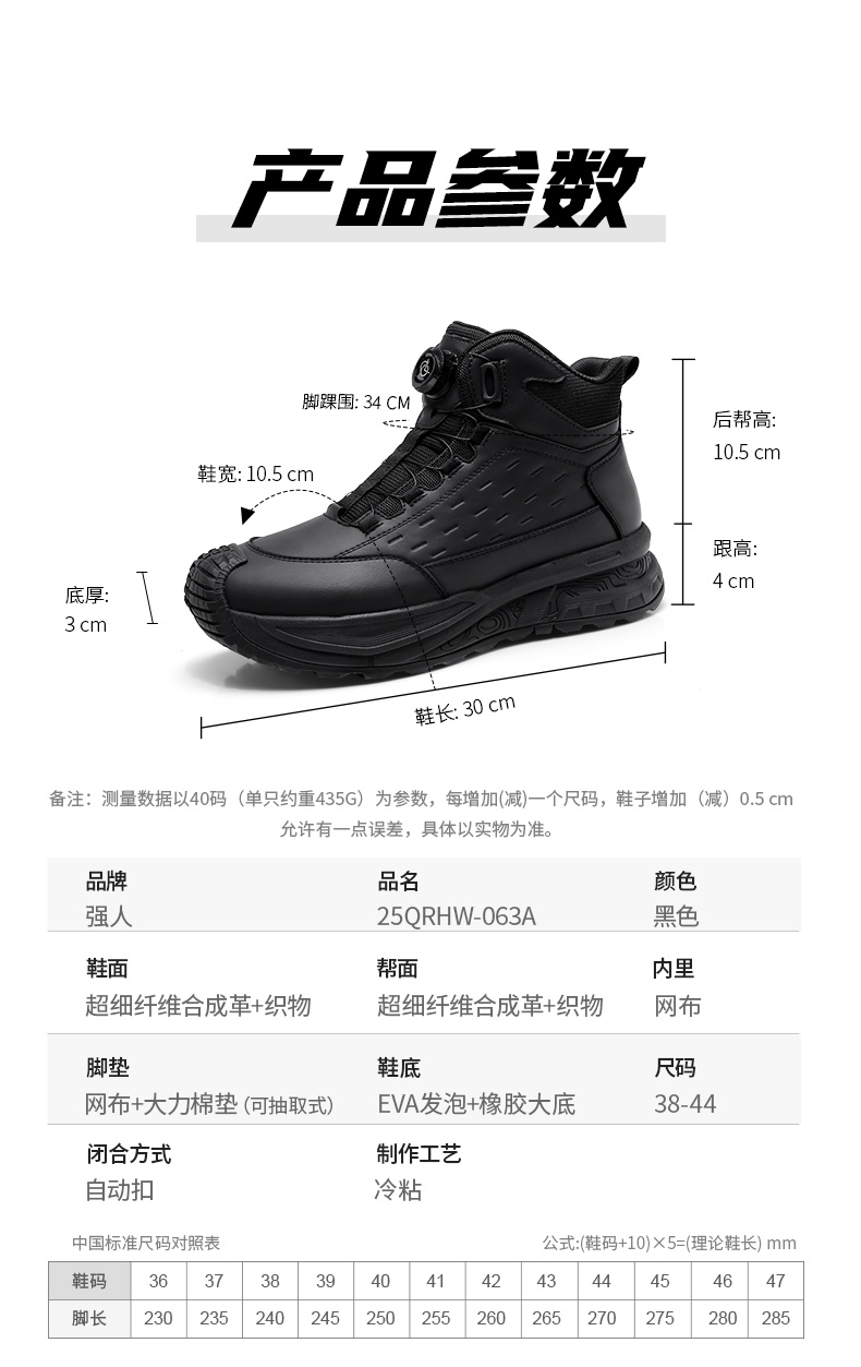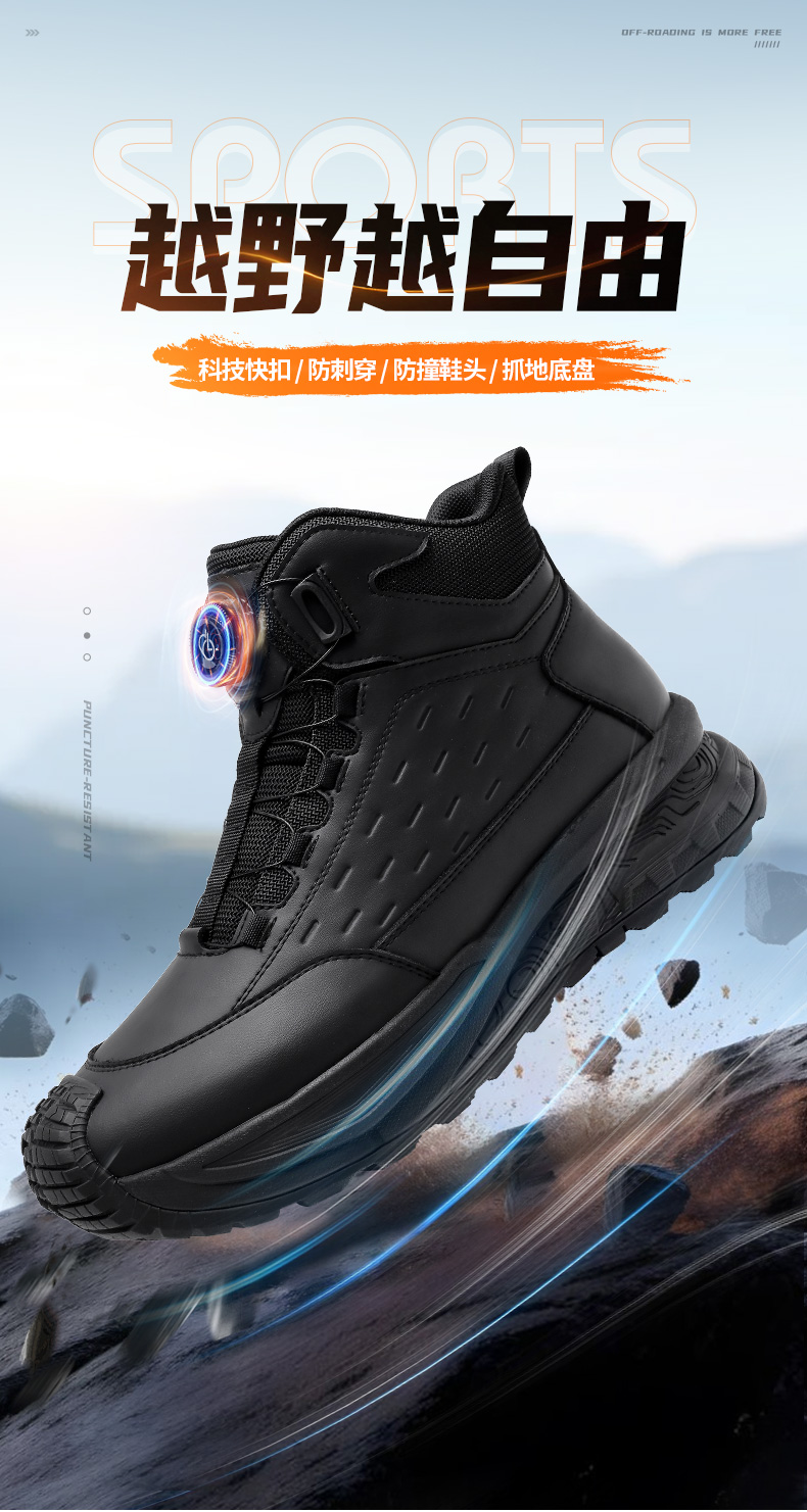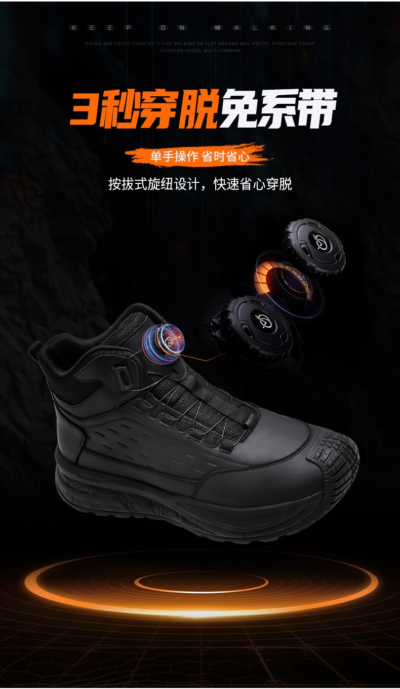 3515强人男靴户外马丁靴厚底百搭高帮鞋防刺穿训练鞋黑色快扣男鞋25QRHW-063A