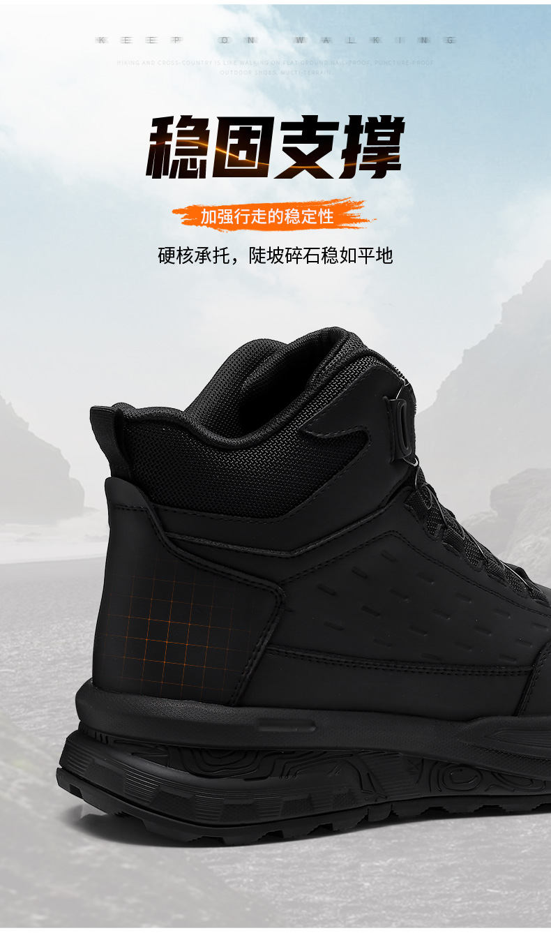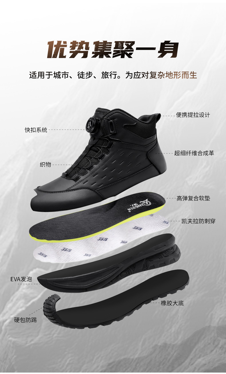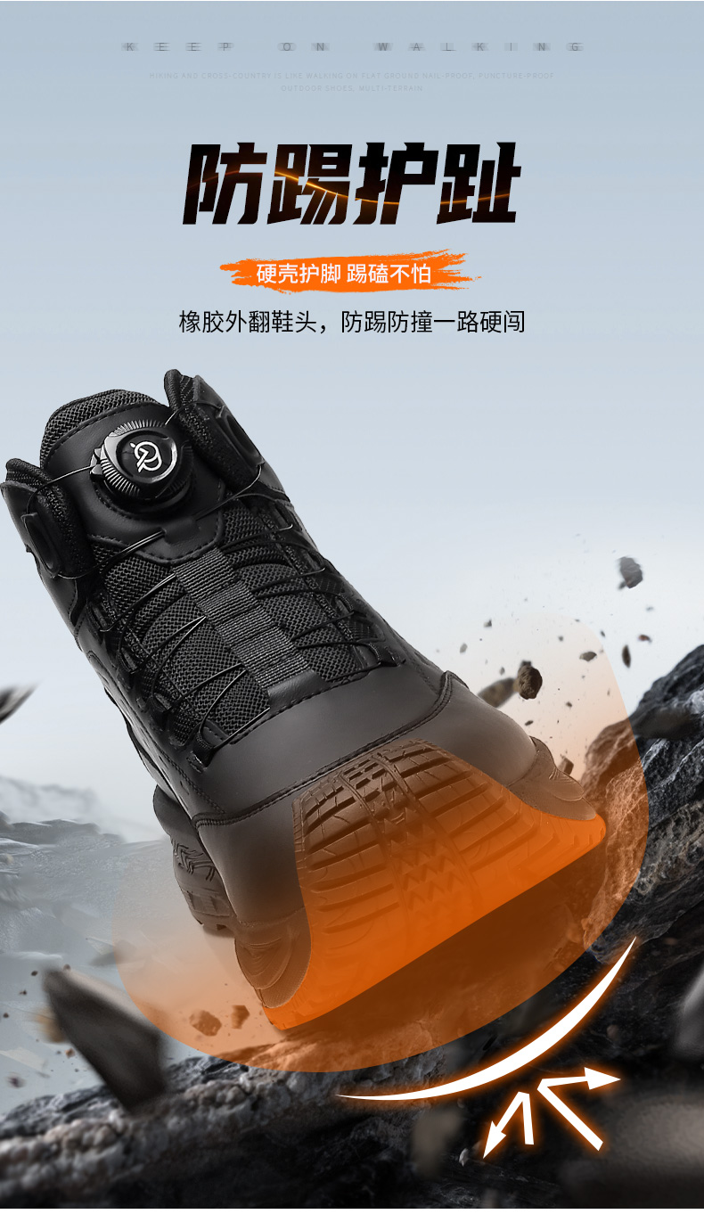 3515强人男靴户外马丁靴厚底百搭高帮鞋防刺穿训练鞋黑色快扣男鞋25QRHW-063A