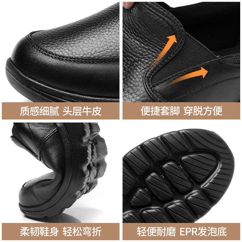 强人3515一脚蹬皮鞋男真皮厚底商务休闲鞋爸爸皮鞋头层牛皮2025秋 JA4-BE053