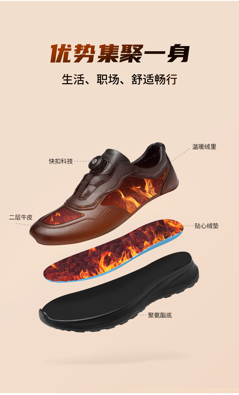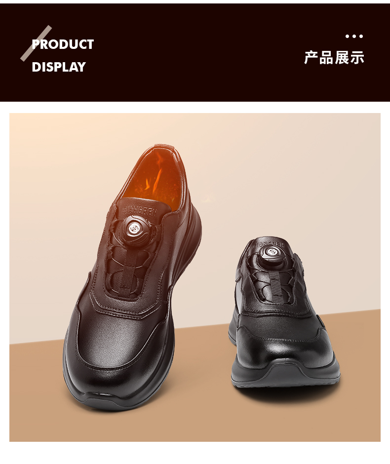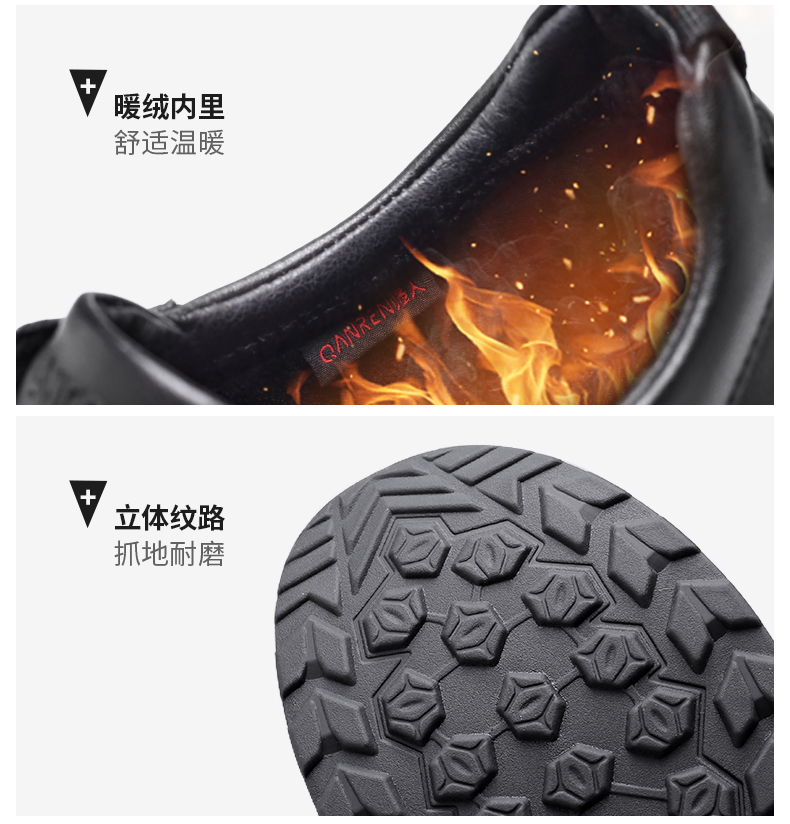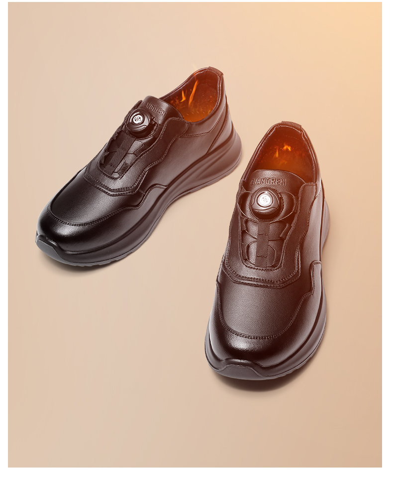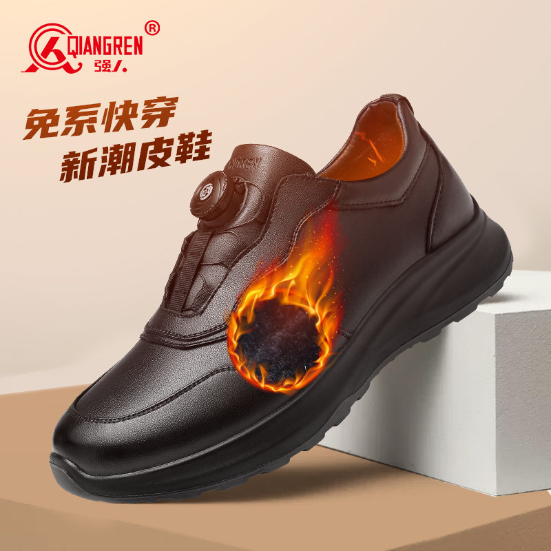 强人3515休闲皮鞋男冬季保暖加绒鞋子男士皮鞋真皮商务通勤鞋二棉 XB87543