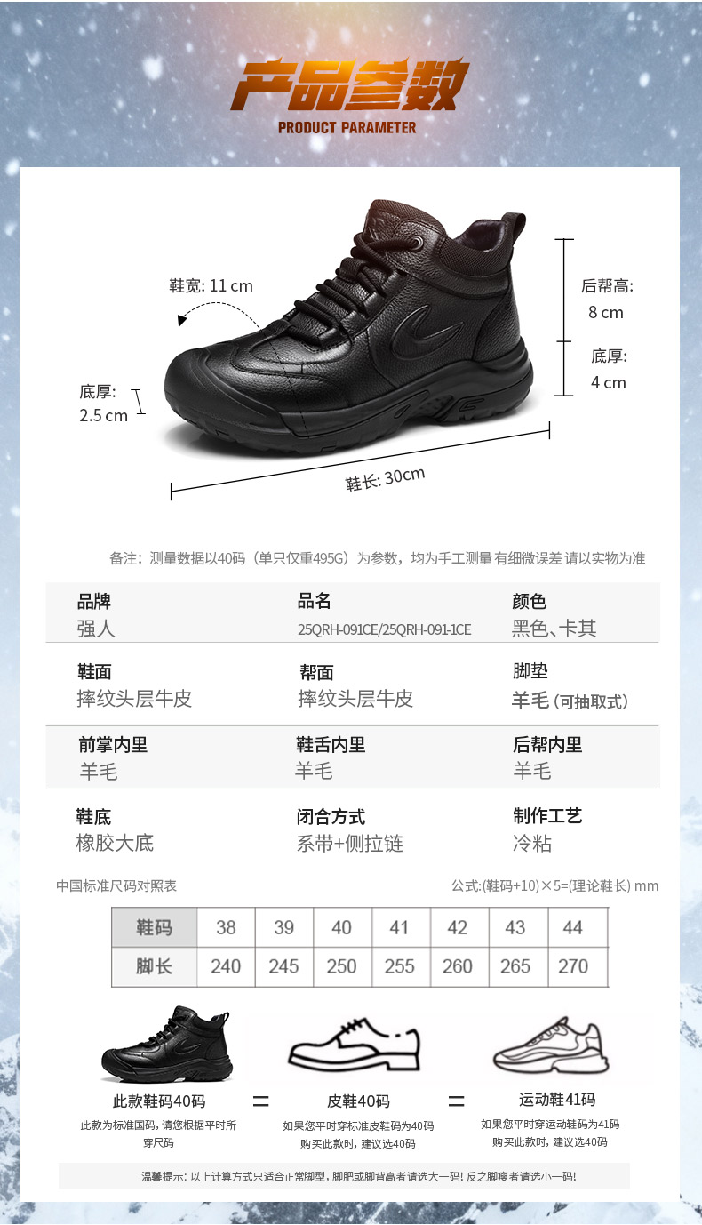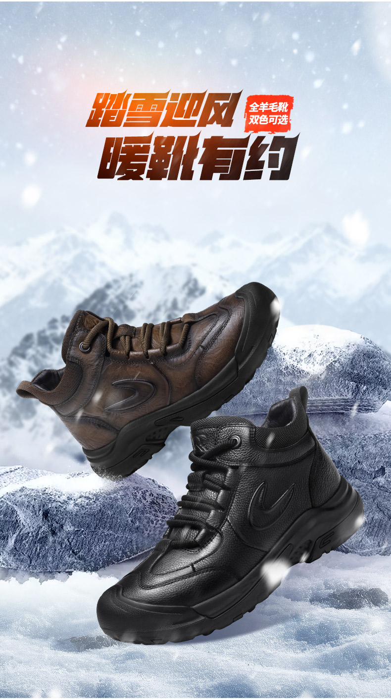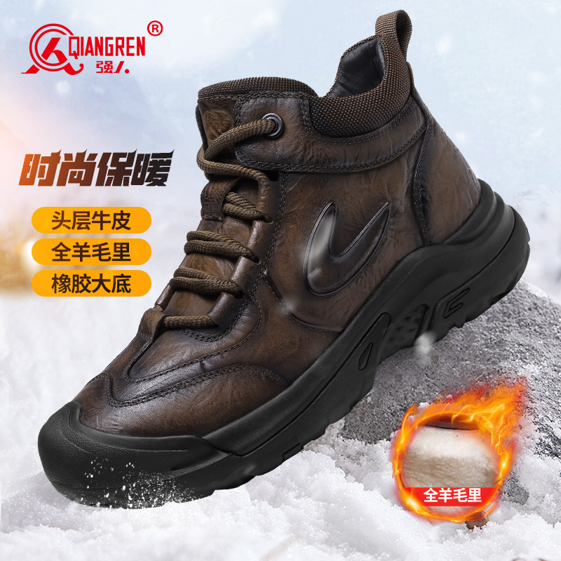 3515强人2025新款羊毛保暖鞋双色黑色/咖色 25QRH-091CE