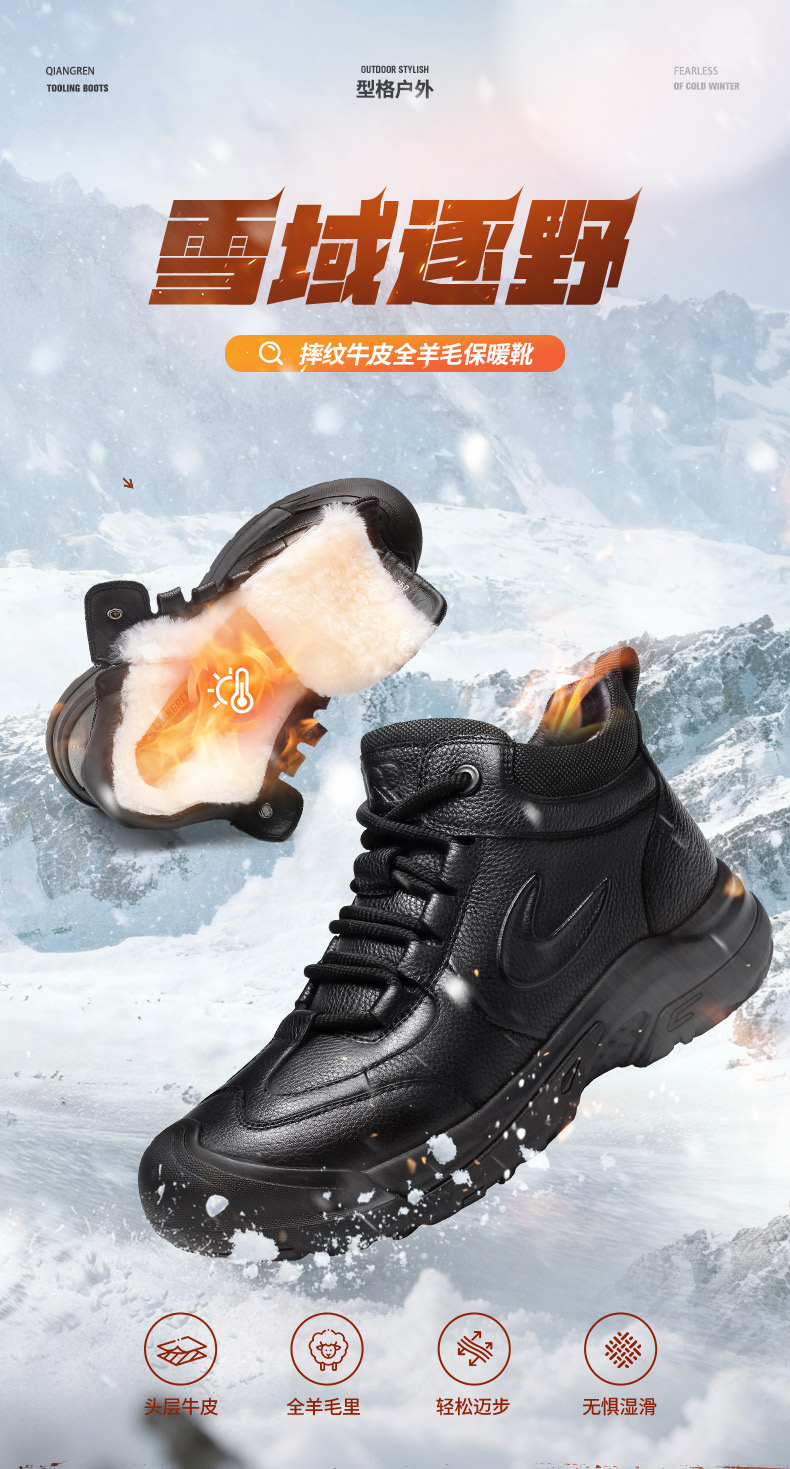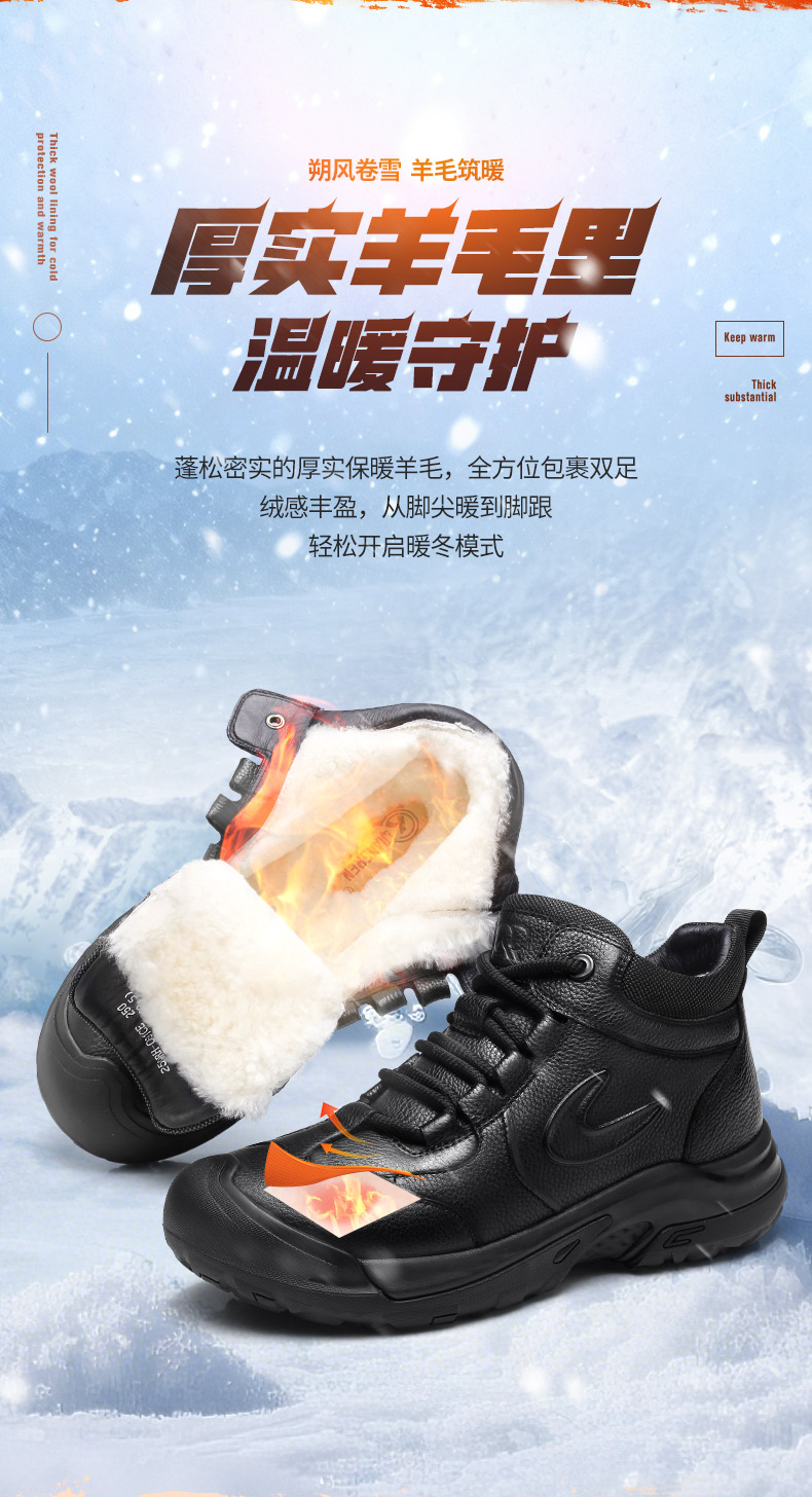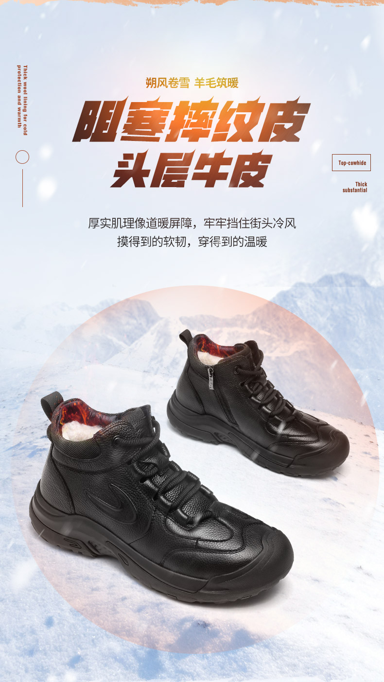 3515强人2025新款羊毛保暖鞋双色黑色/咖色 25QRH-091CE