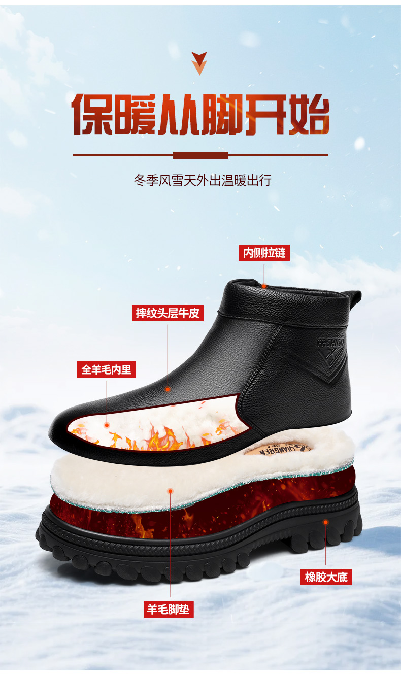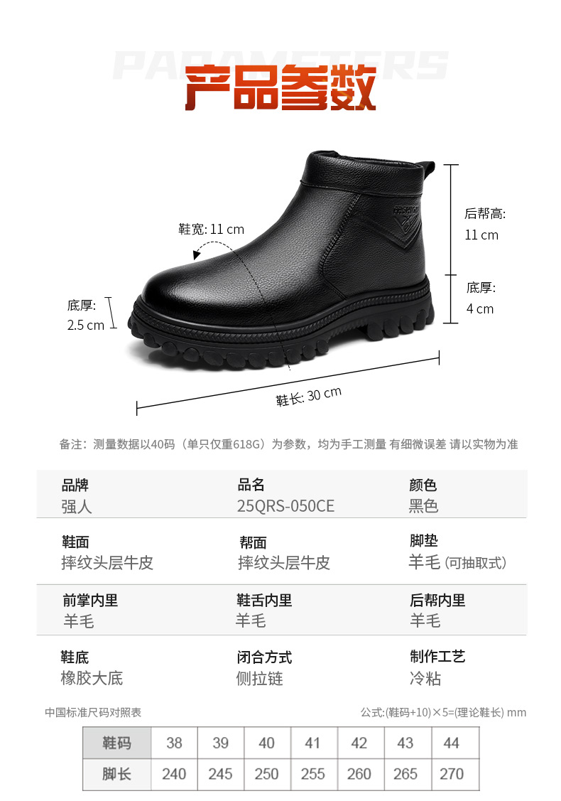3515强人新款羊毛靴商务保暖皮鞋 RS-050CE