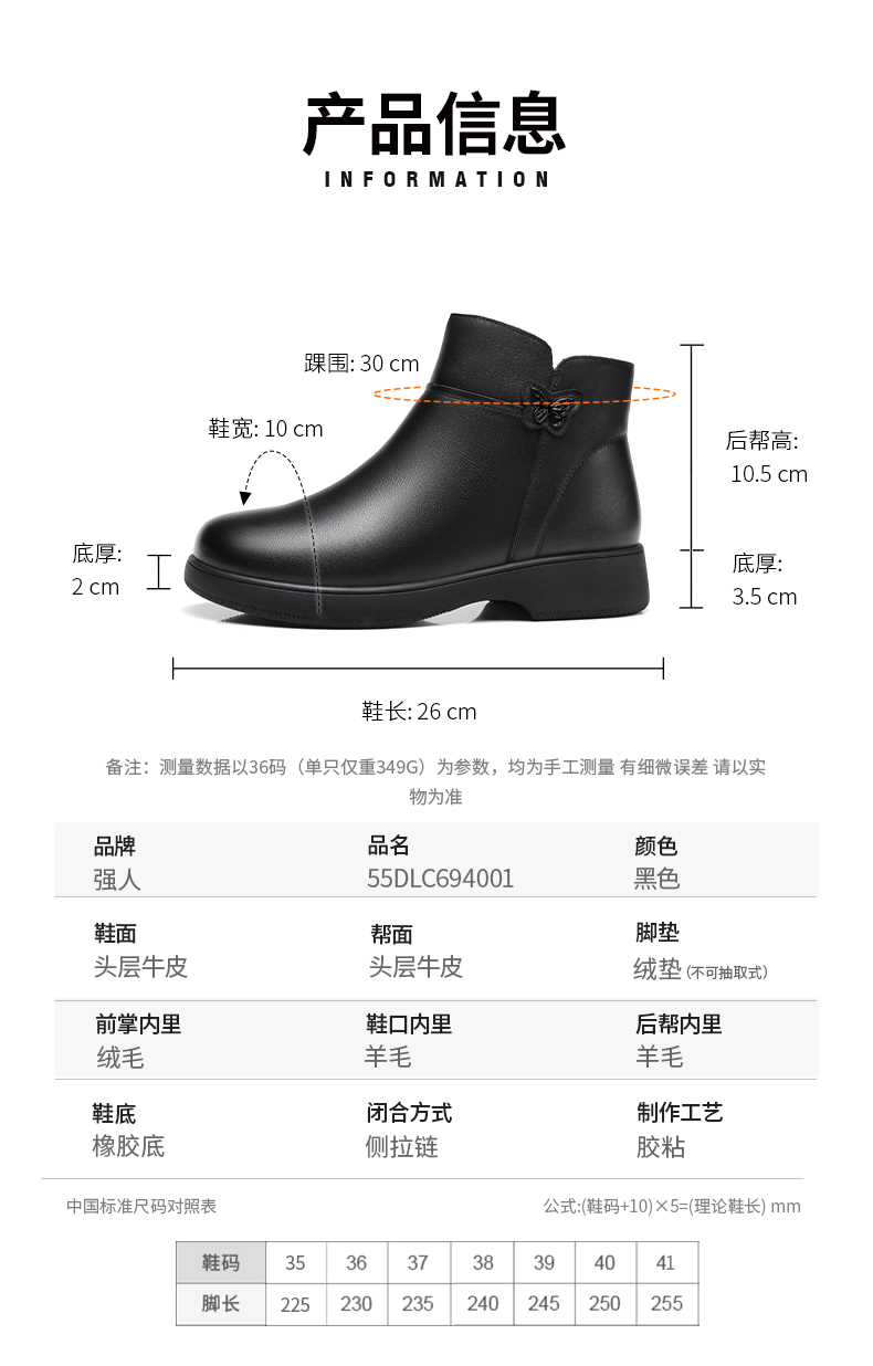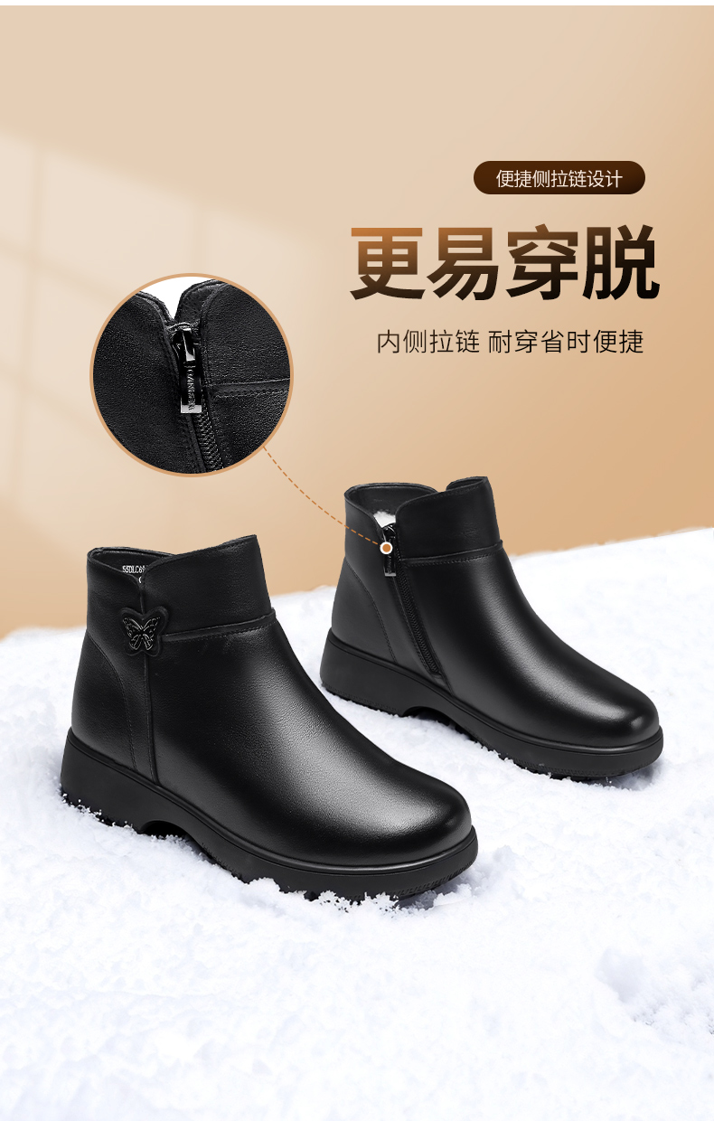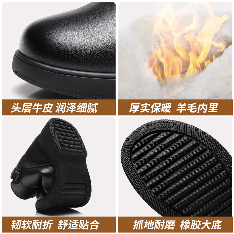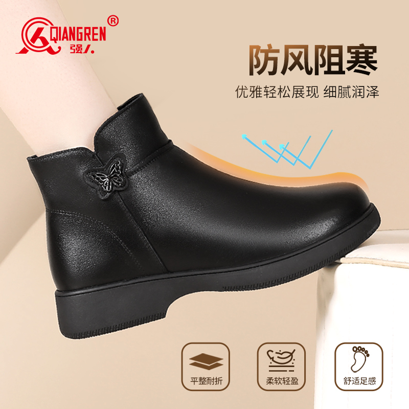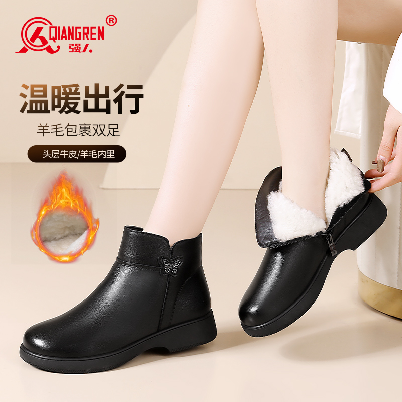 3515强人女鞋冬季真皮保暖高帮皮棉鞋羊毛鞋加绒加厚短靴 694001