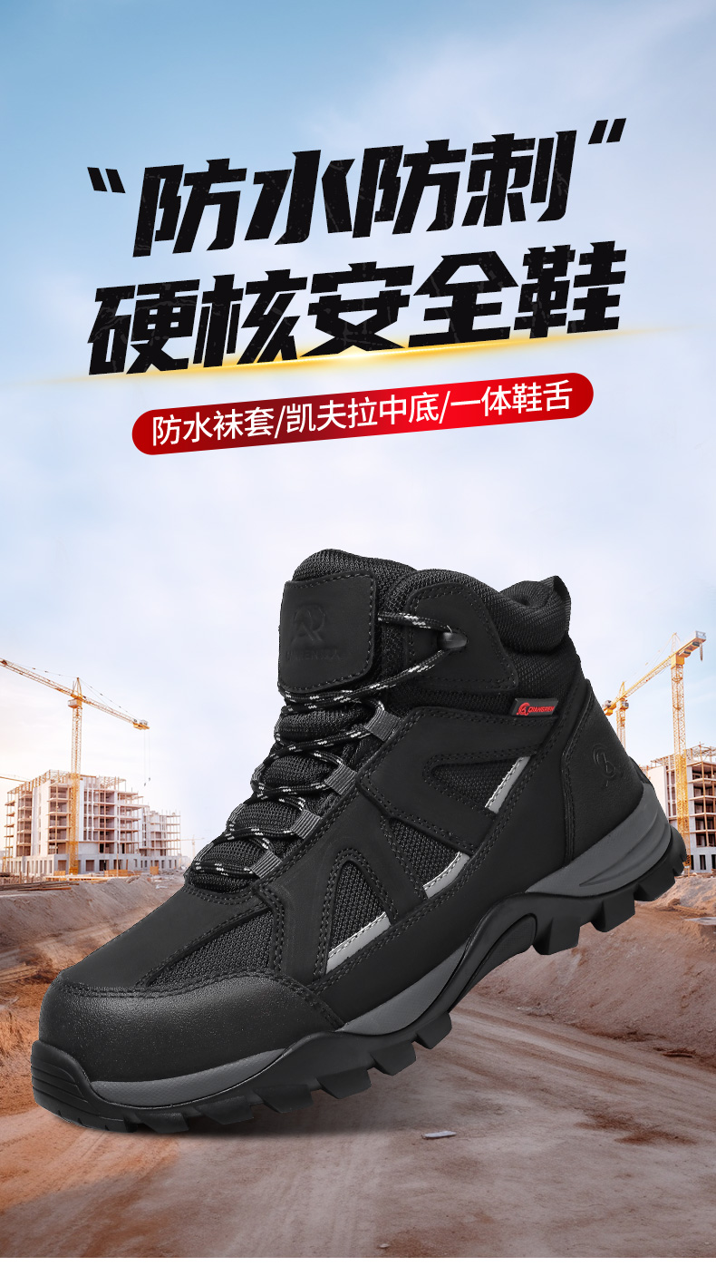 3515强人【防水防刺 + 防踢护趾】工地安全鞋耐磨防滑 SC6019