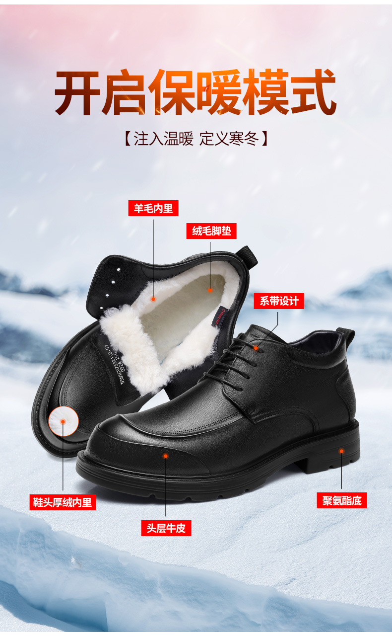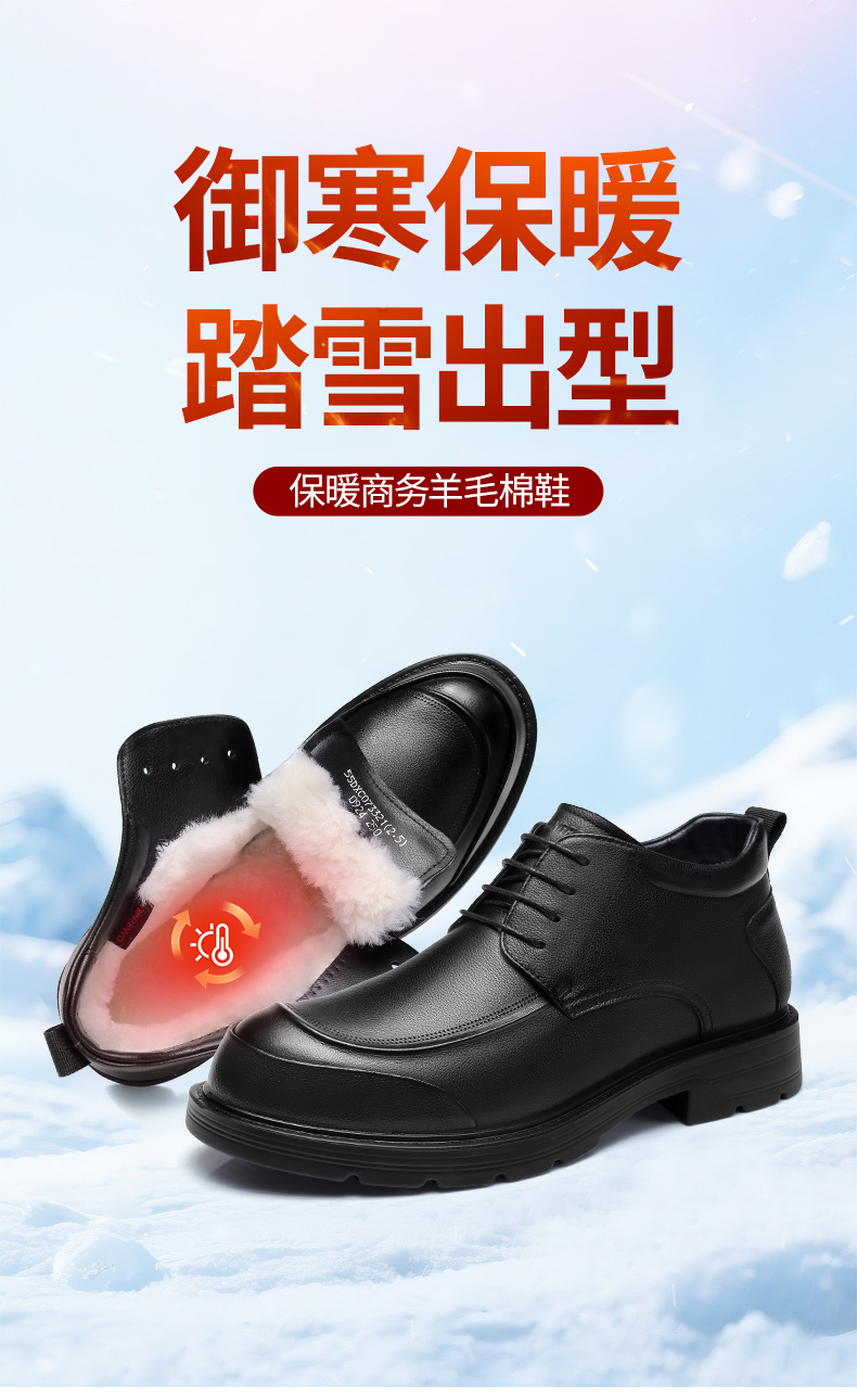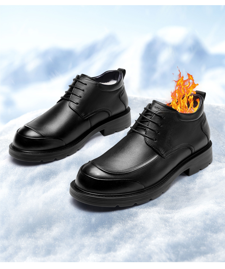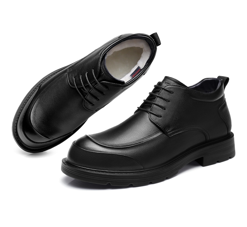 3515强人【头层牛皮 + 羊毛保暖】男士系带商务羊毛棉鞋 073321