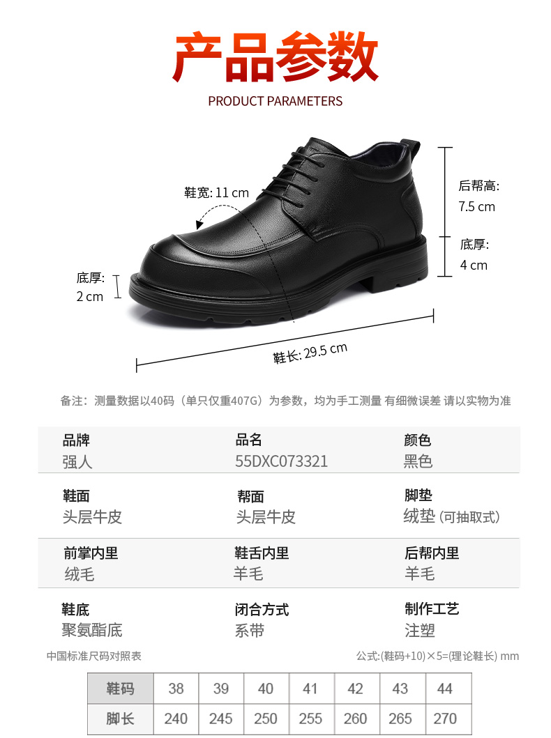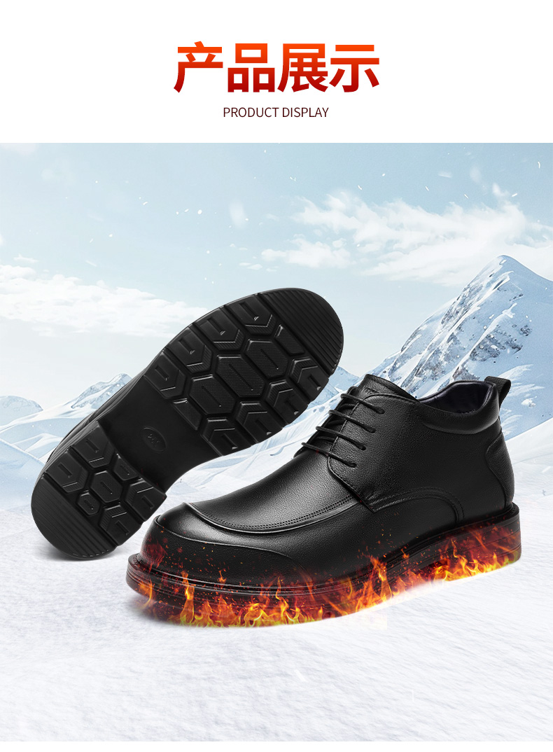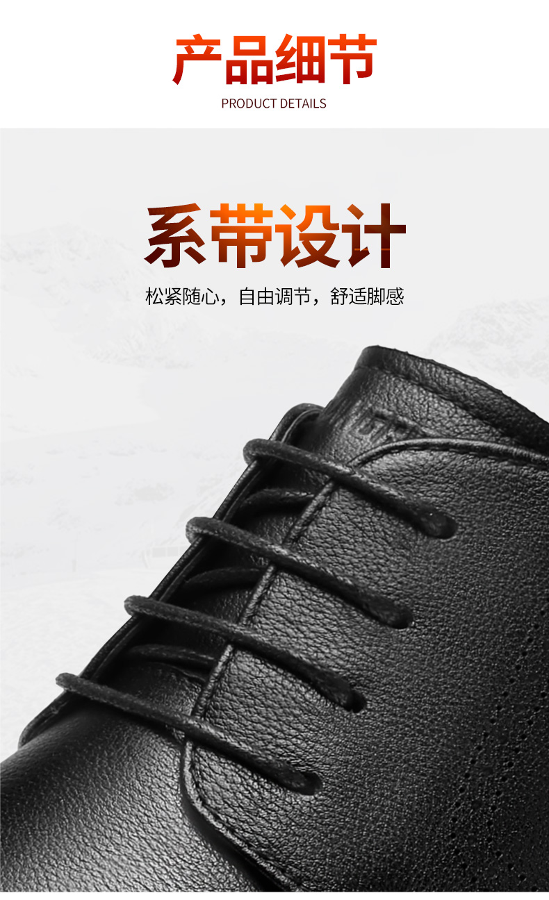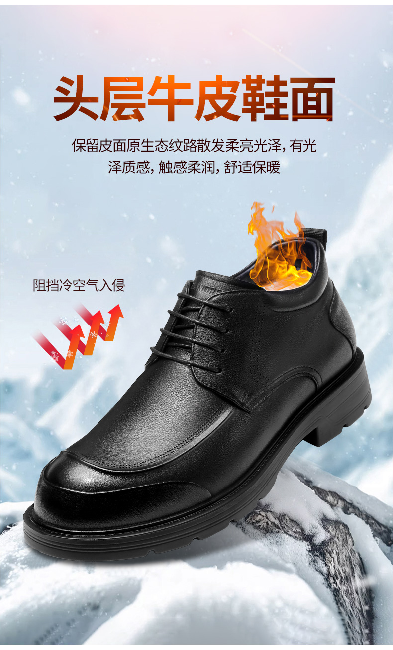 3515强人【头层牛皮 + 羊毛保暖】男士系带商务羊毛棉鞋 073321