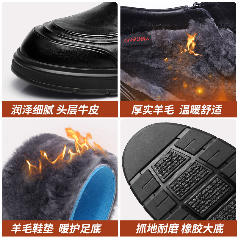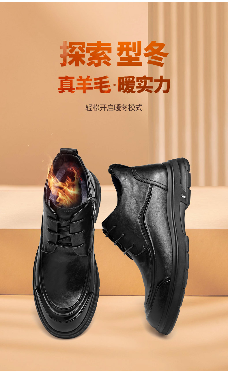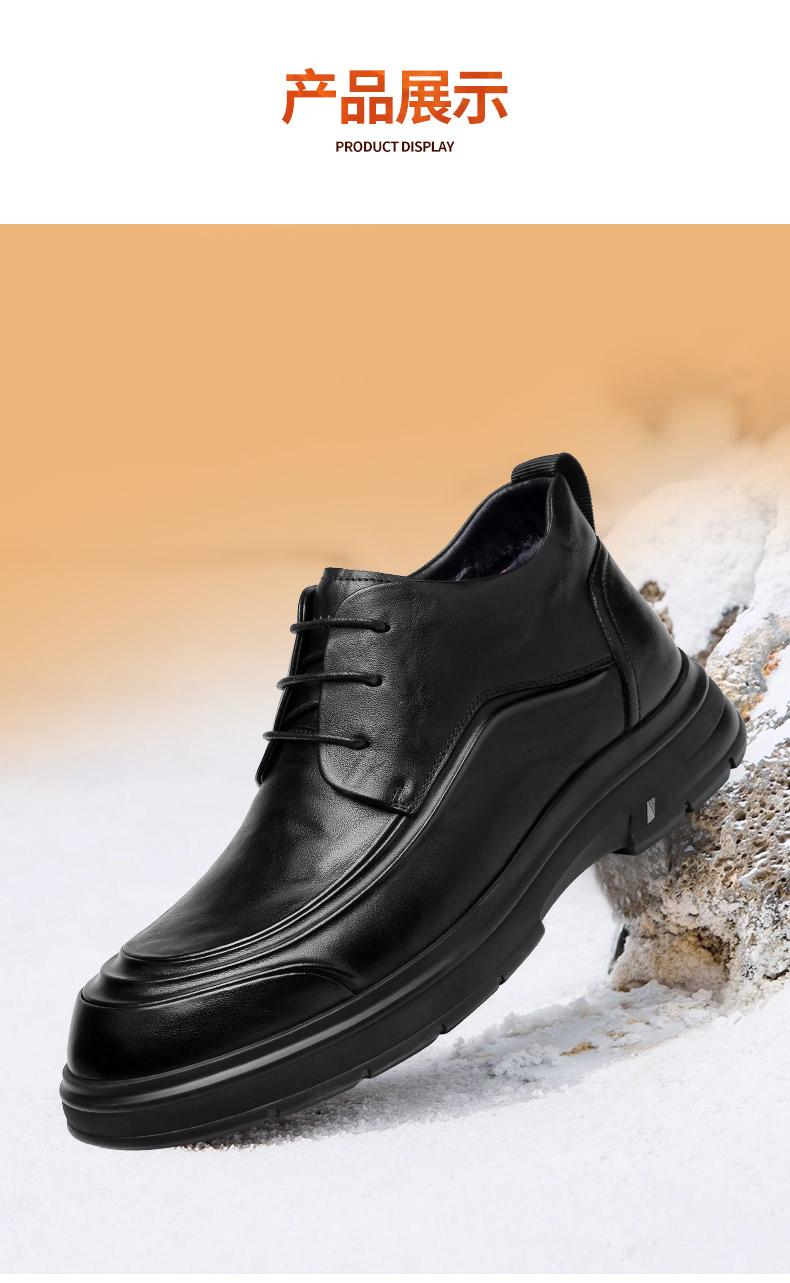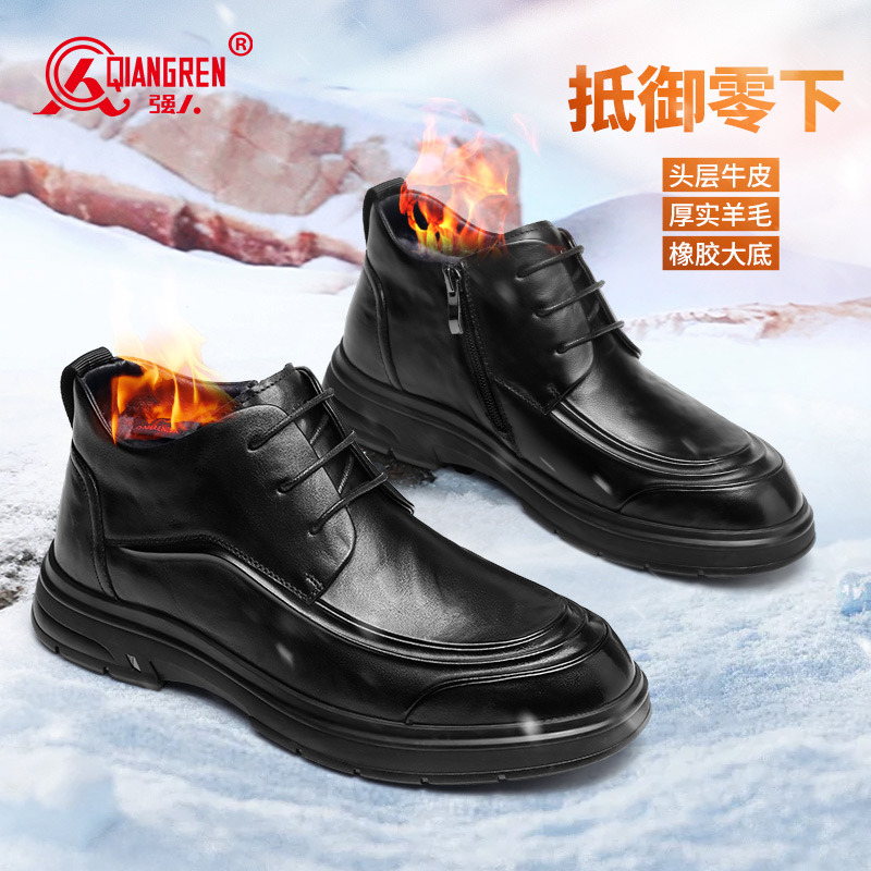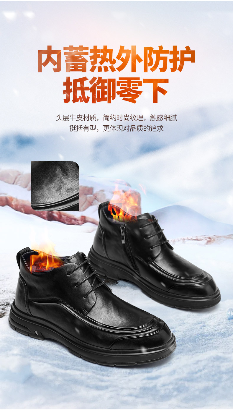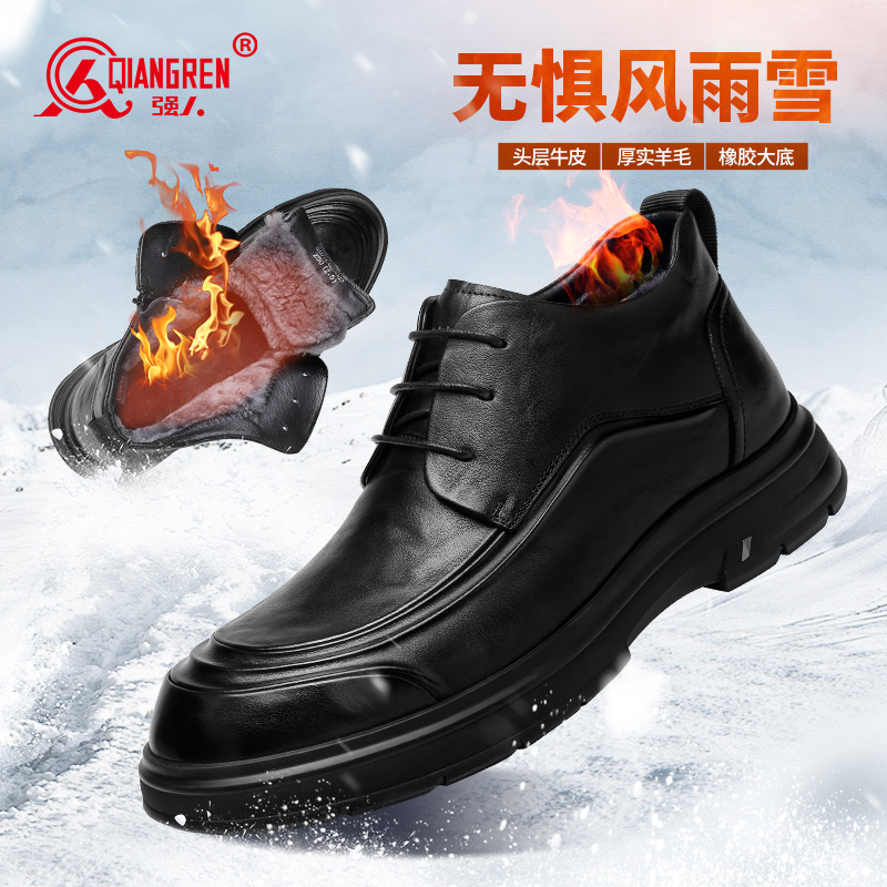 3515强人皮鞋男冬季保暖商务棉鞋毛皮鞋高帮加绒男士皮鞋头层牛皮 605005