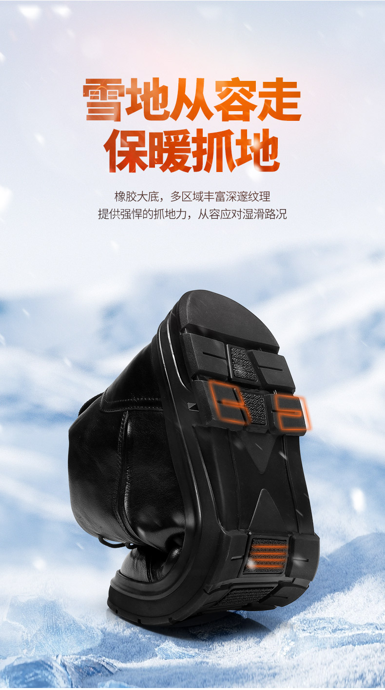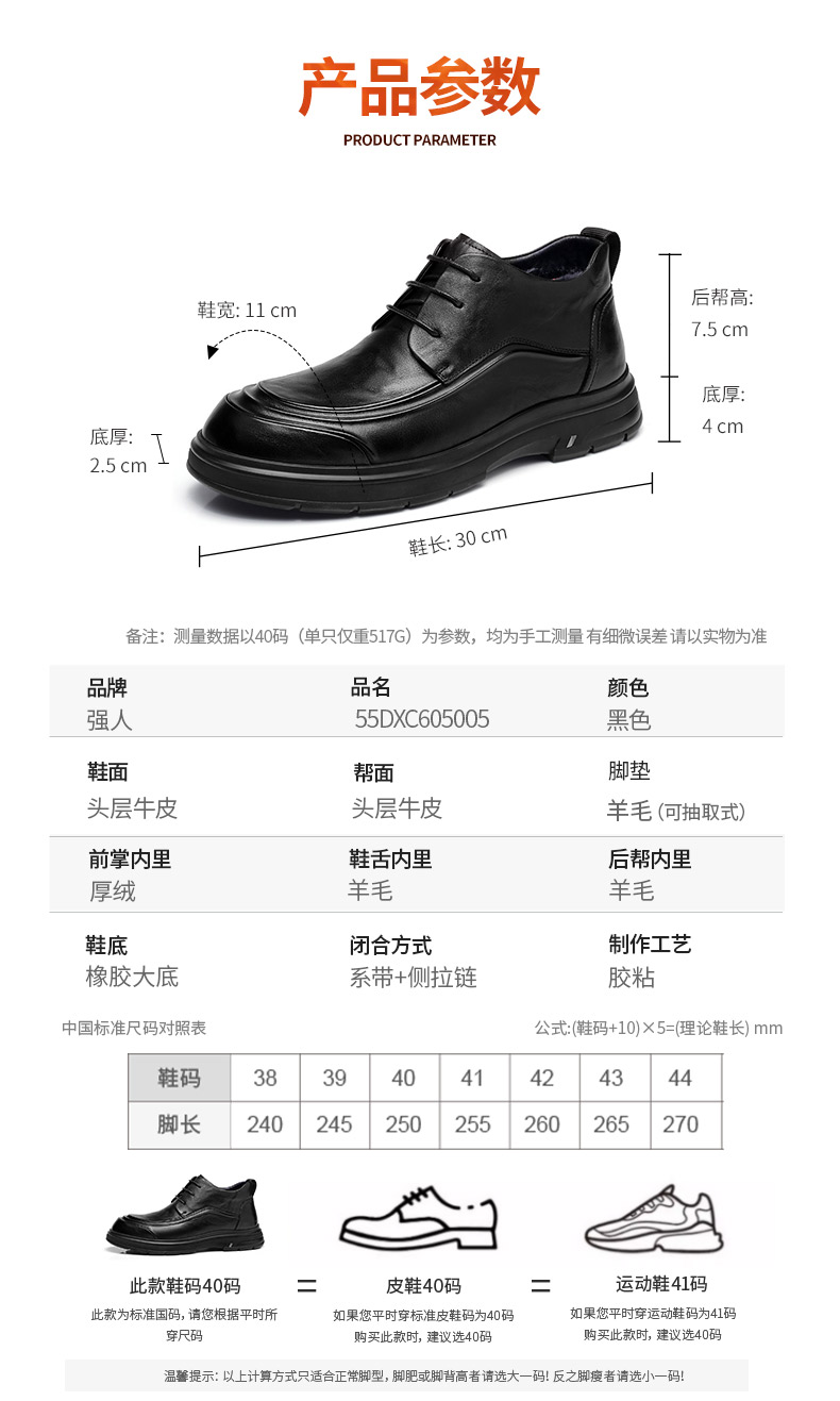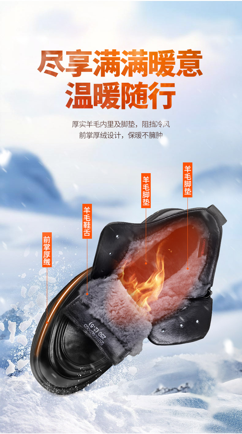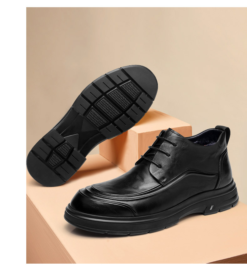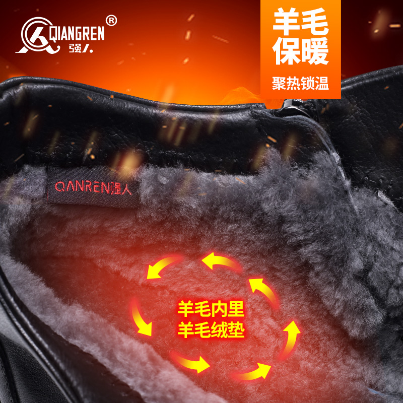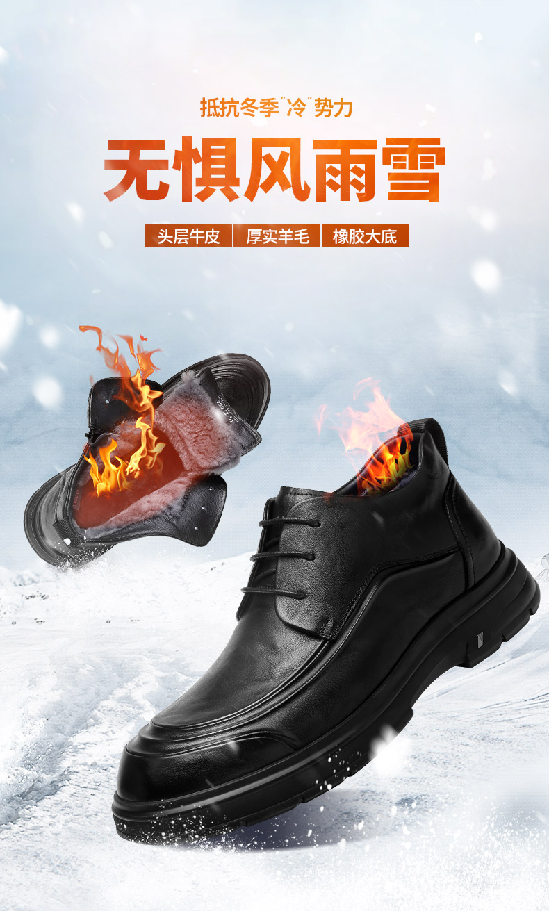 3515强人皮鞋男冬季保暖商务棉鞋毛皮鞋高帮加绒男士皮鞋头层牛皮 605005