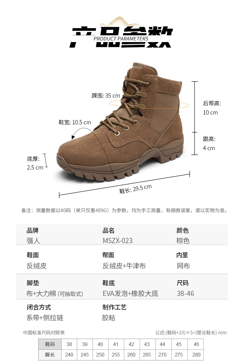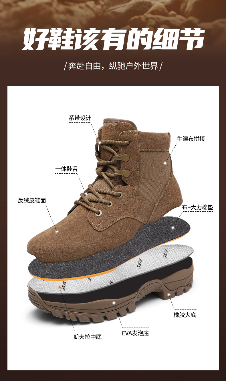 3515强人正品棕色户外训练靴男徒步鞋防刺穿沙漠靴春秋越野登山鞋 MSZX-023