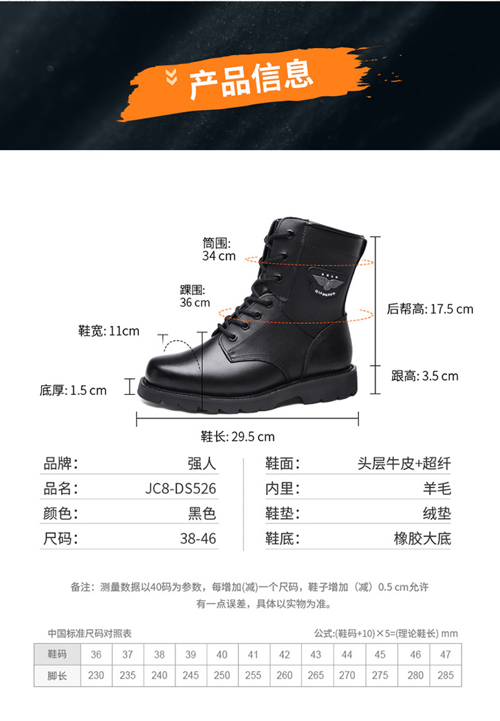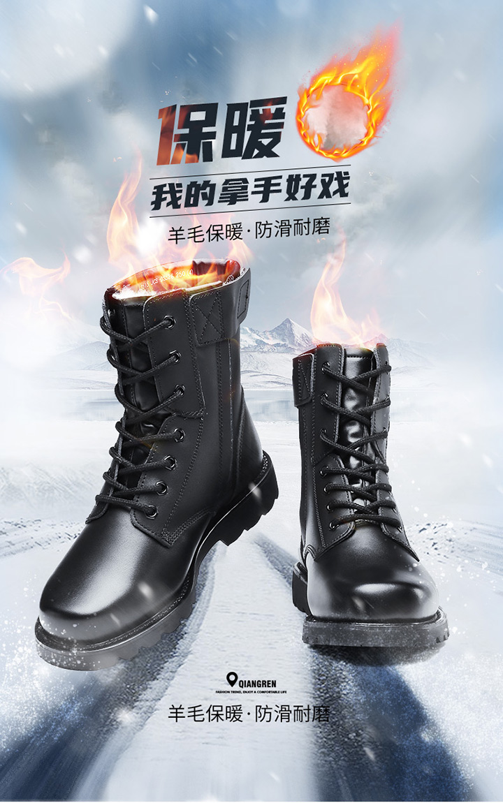3515强人冬季男靴保暖羊毛防寒鞋户外雪地靴高帮加厚执勤鞋厚底鞋 JC6-BC127