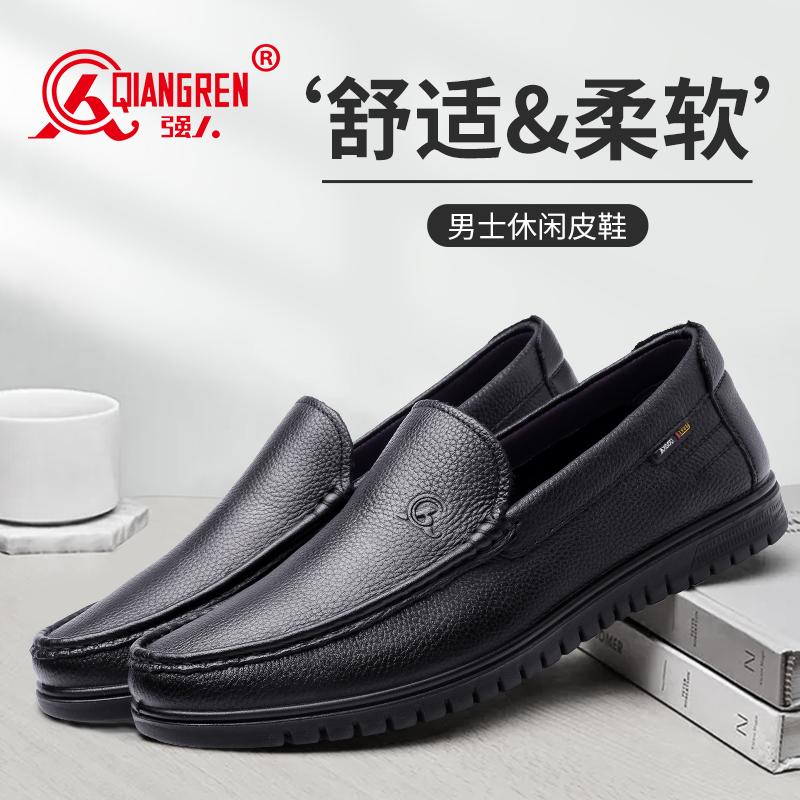 3515强人皮鞋真皮软底驾车鞋男士皮鞋轻便透气男单鞋一脚蹬皮鞋 351049