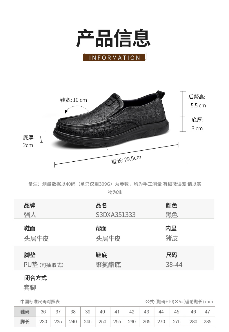3515强人商务皮鞋男牛皮舒适休闲通勤鞋圆头系带超轻面试男士皮鞋 (38--48码)351333