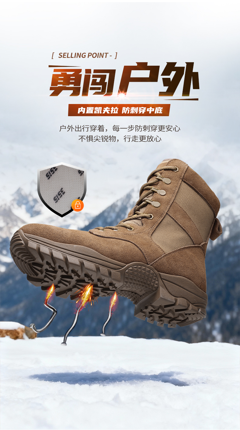 3515强人男靴夏季透气户外训练靴高帮防刺穿战术靴薄款网面登山靴QRFJSB-003