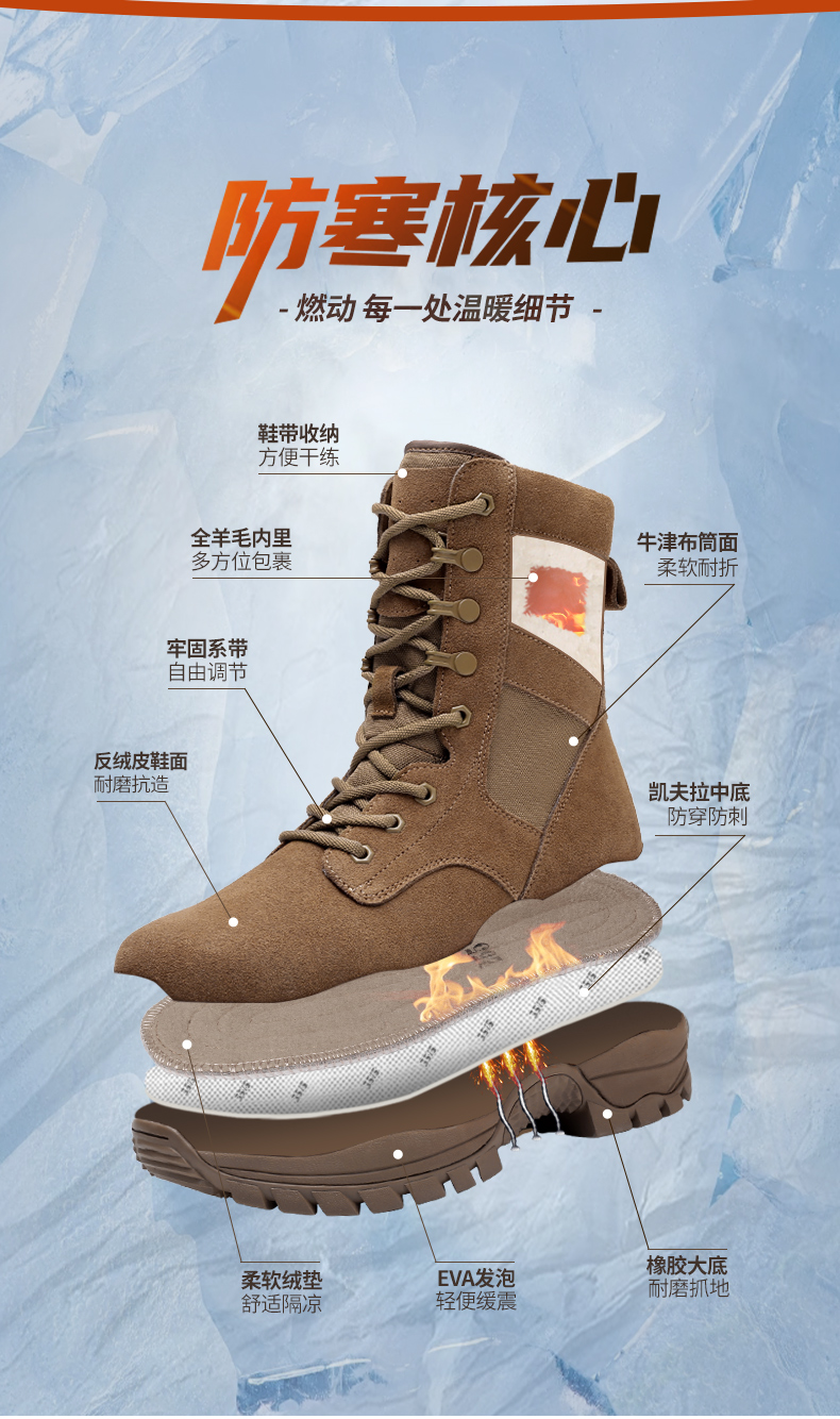 3515强人冬季男靴保暖羊毛防寒鞋户外雪地靴高帮加厚执勤鞋厚底鞋 JC6-BC127